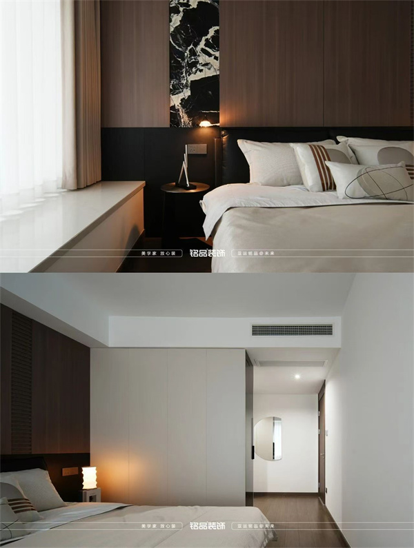 偶爾跳脫的大理石紋理、木飾面與暖色燈帶,恰似點(diǎn)睛之筆,在黑白灰的沉靜中漾起一絲鮮活,卻又絕不破壞整體的高級(jí)調(diào)性。柜體也不再是單純的收納工具,而是空間的“裝飾主角”,以利落的線條、與空間同色的黑白灰配色,渲染出整個(gè)空間的高級(jí)質(zhì)感。