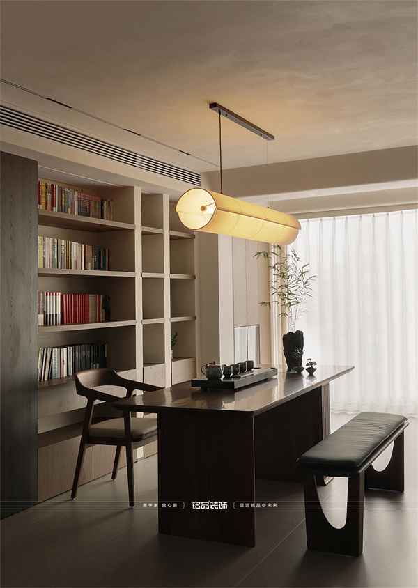 這些材質(zhì)以其通透或柔軟的質(zhì)感,中和了實(shí)木的厚重,為空間注入呼吸感。