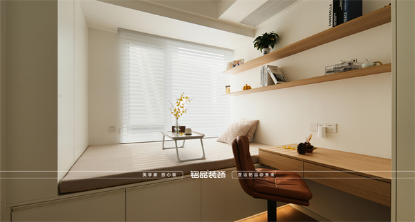 書房結(jié)合儲物:利用墻面系統(tǒng)將書房與收納功能無縫銜接,保持視覺整潔的同時,提供靈活的工作與儲物場景。