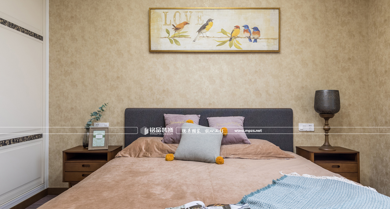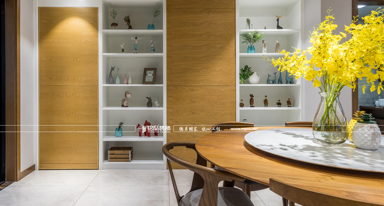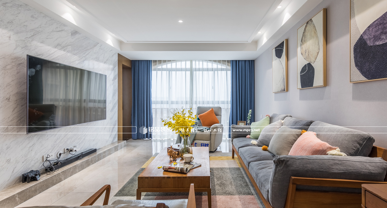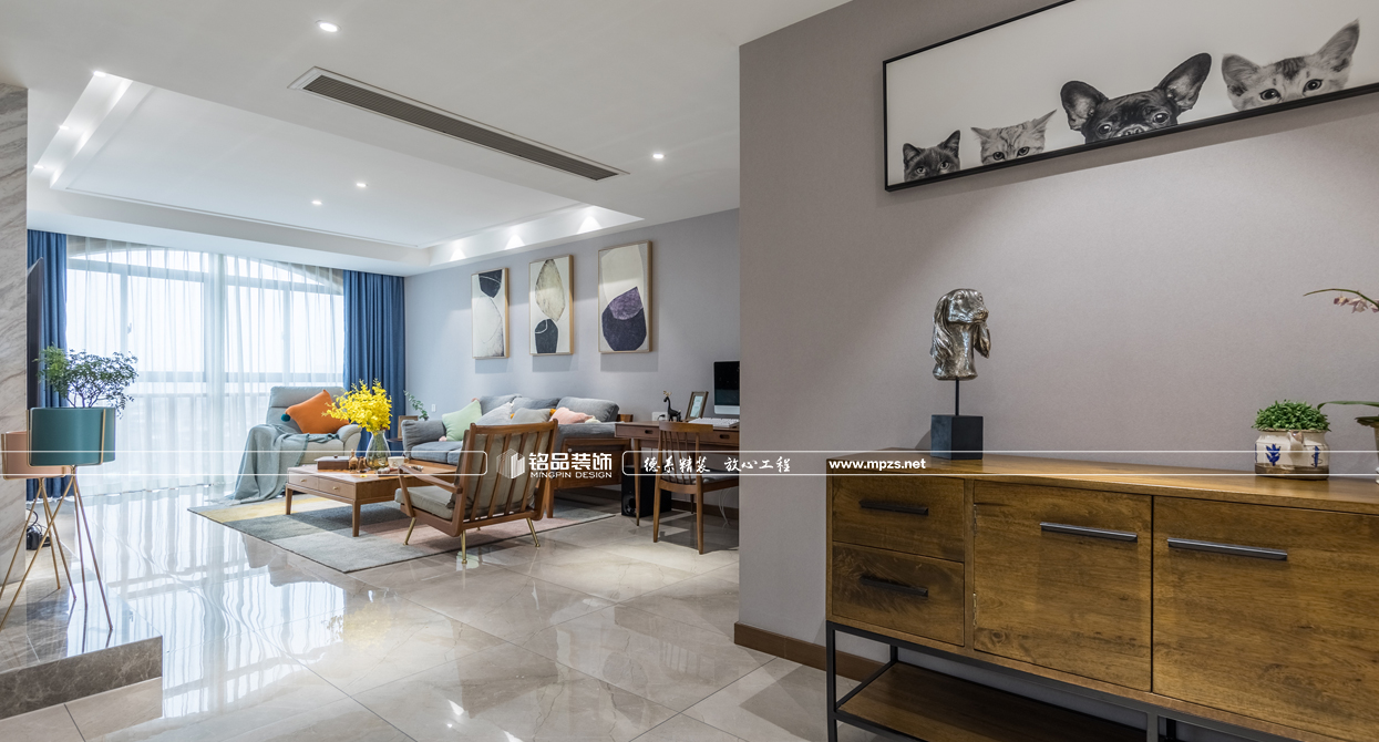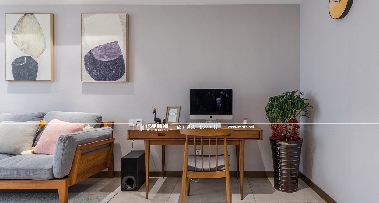 通過材質(zhì)的運用,把空間進行合理的劃分,完美呈現(xiàn)出北歐風(fēng)格的靈魂。延續(xù)硬裝設(shè)計與材質(zhì)上奠定的雅致,在沉穩(wěn)的空間基調(diào)上,植入生動的軟裝表現(xiàn)手法。以步步帶入的層疊關(guān)系逐步渲染出整個空間的格調(diào)與品質(zhì)??蛷d大面積大灰白石材背景的利用,增加了空間的層次感,墻面掛裝飾畫使墻面看起來不會過于蒼白,更加生動豐富,優(yōu)雅又有藝術(shù)氣息,提升格調(diào),讓空間中的重點之處富有活力,固定式的石材地臺取代傳統(tǒng)的電視柜給人以簡約大氣感覺,整個空間以灰調(diào)做底配上原木系家具,使整個房子生動而富有情感,讓身心放松自在。