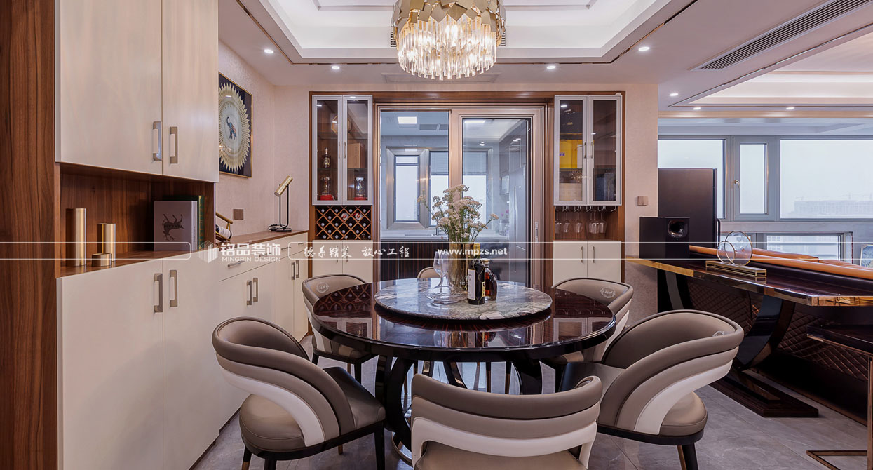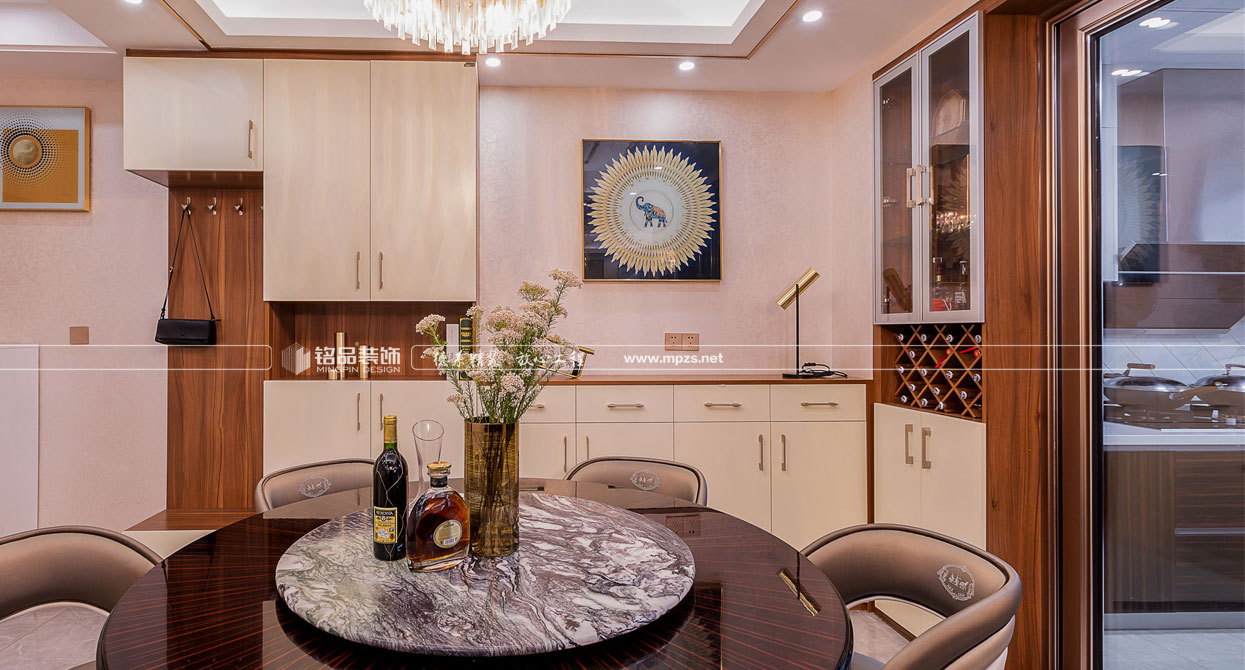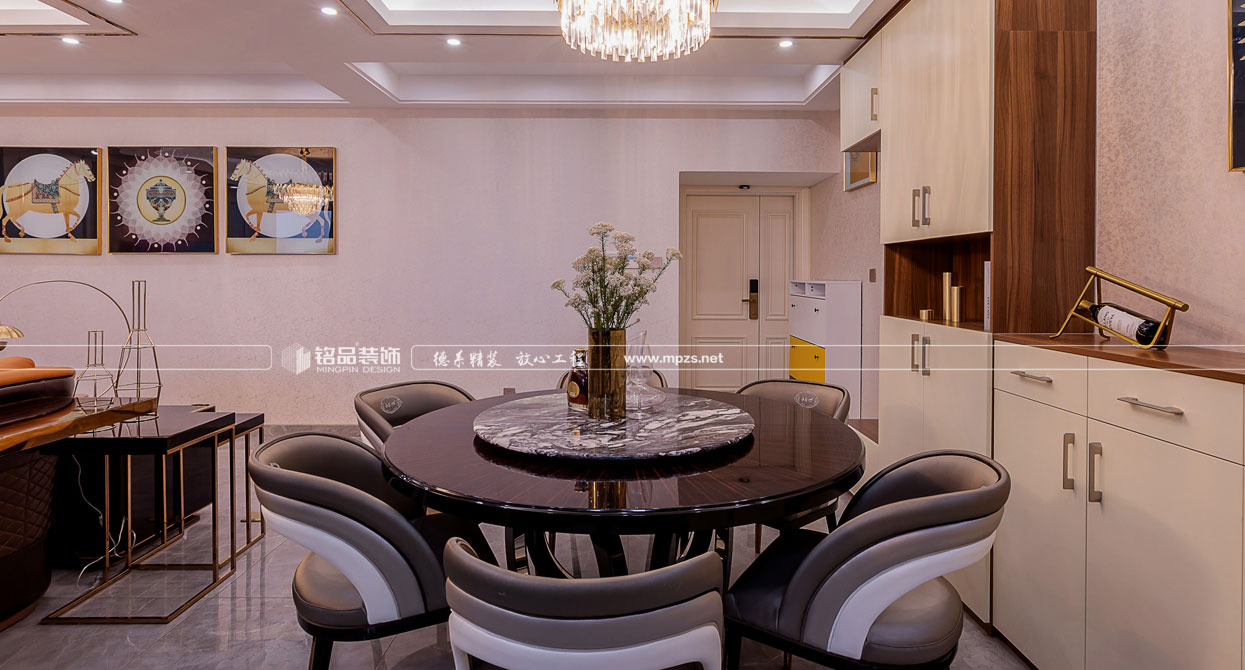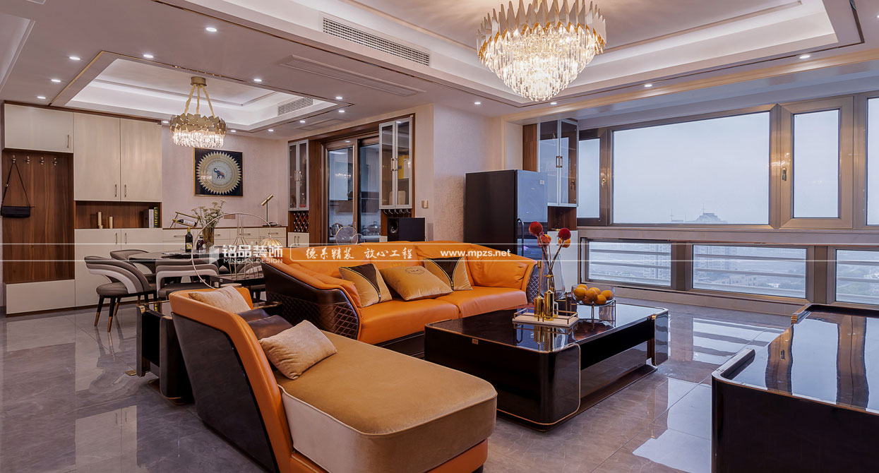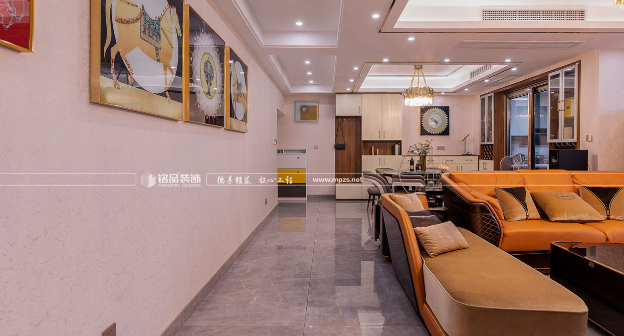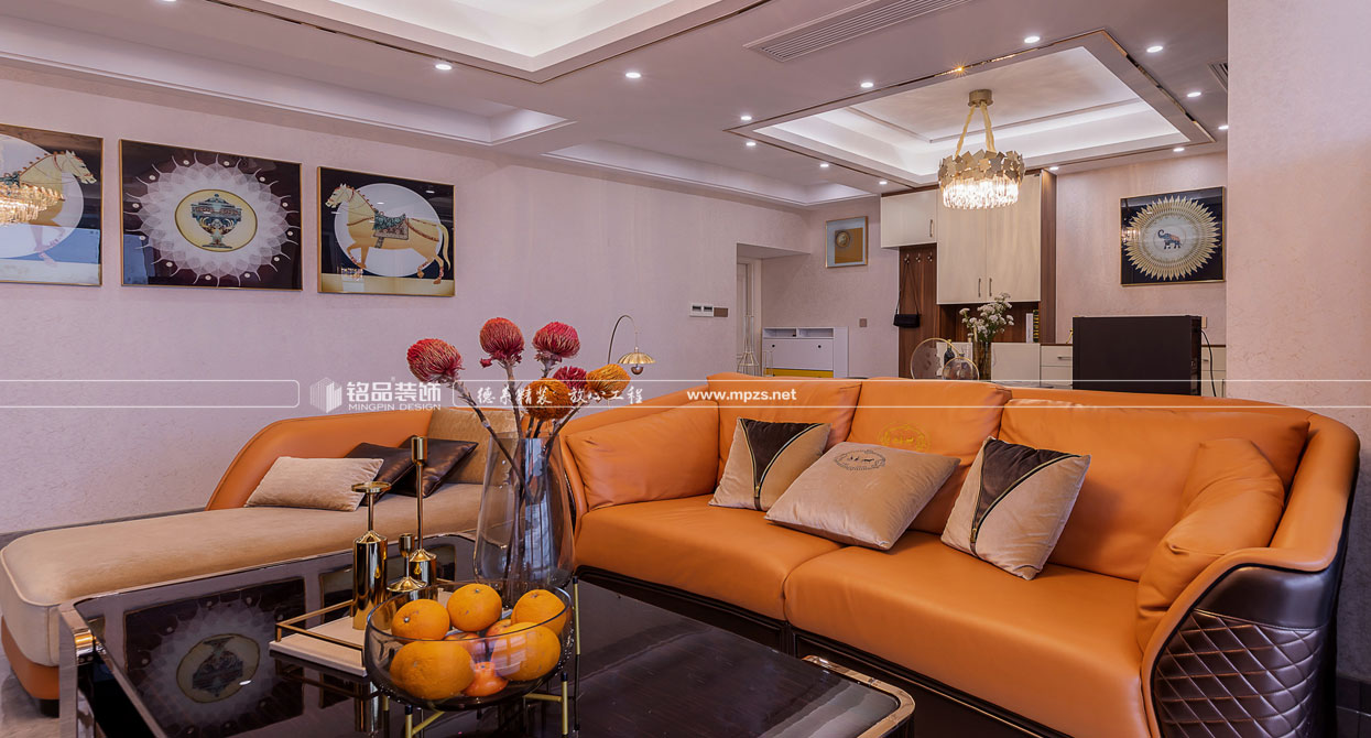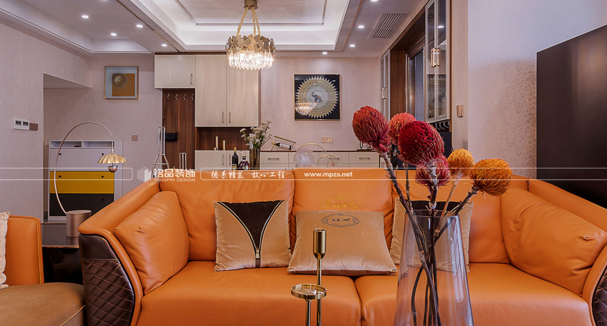 空間以時尚奢侈品牌為主題,呈現(xiàn)一場低調(diào)奢華的故事。本設(shè)計定位把阿曼尼品牌融入客餐廳中,提取橘色皮質(zhì)沙發(fā),烤漆面餐桌,,玫瑰金等元素.秉承著超凡卓越、極至絢爛的設(shè)計理念,打造一個時尚而不失經(jīng)典,奢華而不失品味的現(xiàn)代之家。設(shè)計有形,品味無形。設(shè)計的原則其實(shí)就是品味的規(guī)則。作為社會的人,某個體的文化知識結(jié)構(gòu)、人生閱歷、社會等級與生活環(huán)境的差異,往往造就了品味與格調(diào)的差別。本案以“輕奢”的品味統(tǒng)領(lǐng)全局,用不同的視角打造一種新的生活方式。