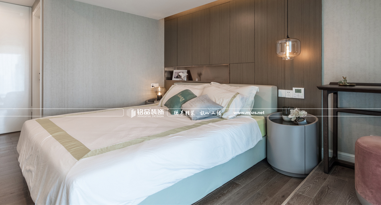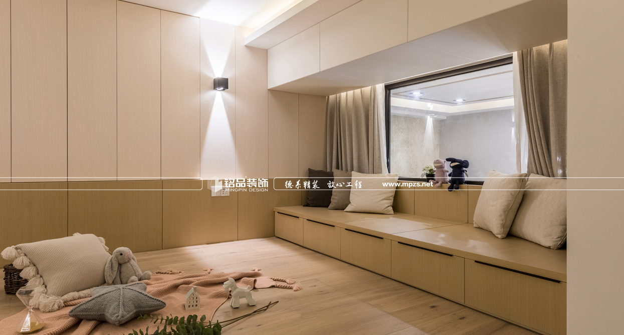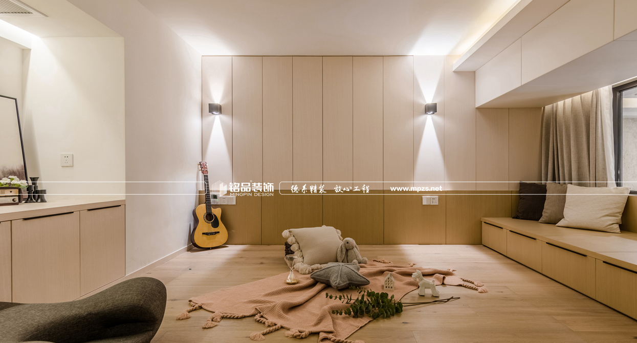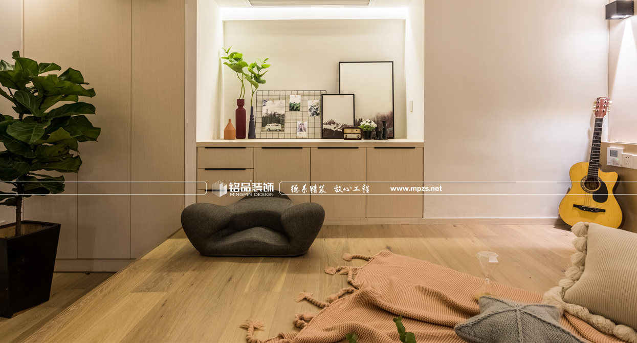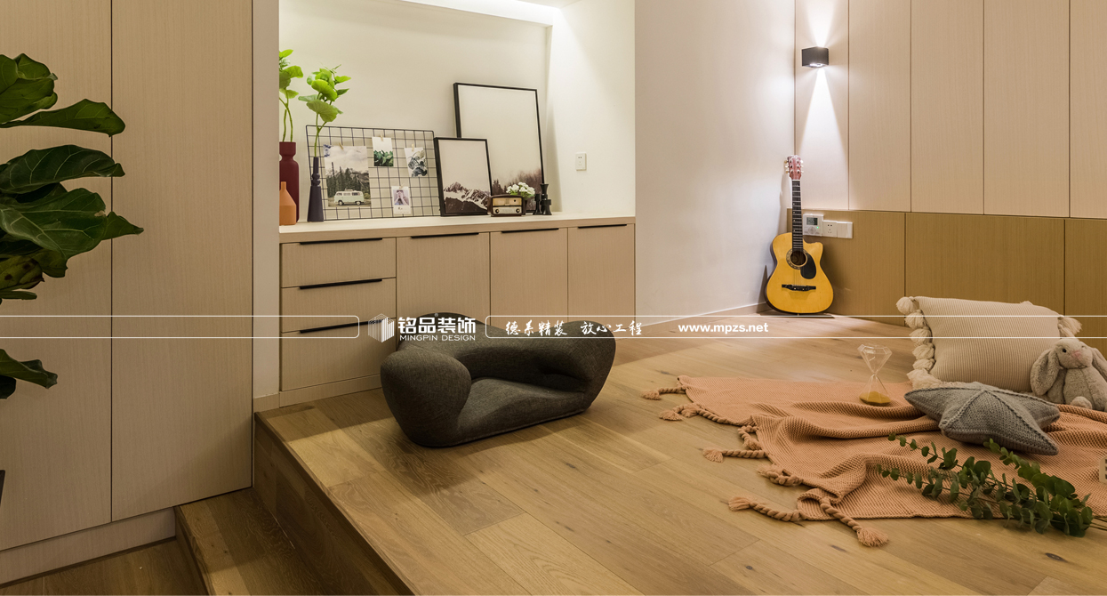 中間雙跑樓梯,中間挑空的設(shè)計(jì)讓原本壓抑的層高變得開(kāi)闊大氣,二層兩個(gè)臥室互不干擾,也解決了次臥無(wú)窗的問(wèn)題??蛷d上方的吊頂也做了抬高的設(shè)計(jì),一解決層高低矮的問(wèn)題,二抬高部分剛好形成了臥室的榻榻米,把臥室做成了一塊多功能區(qū),集合睡眠、娛樂(lè)聚會(huì)、辦公。