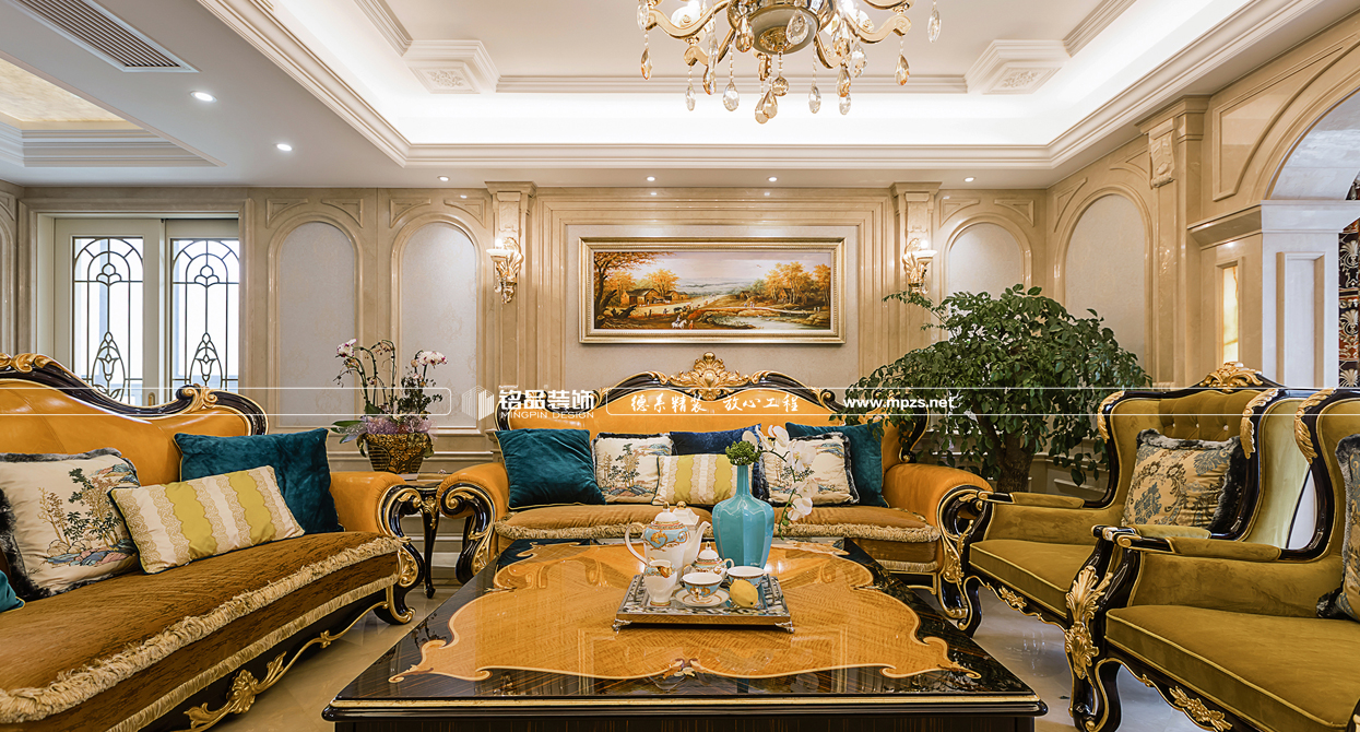 房屋的整體空間比較開闊,最初的設(shè)計(jì)理念是希望整體的效果比較厚實(shí)但并非用深色系,凸出歐式效果的奢華,讓空間看似大氣又精致