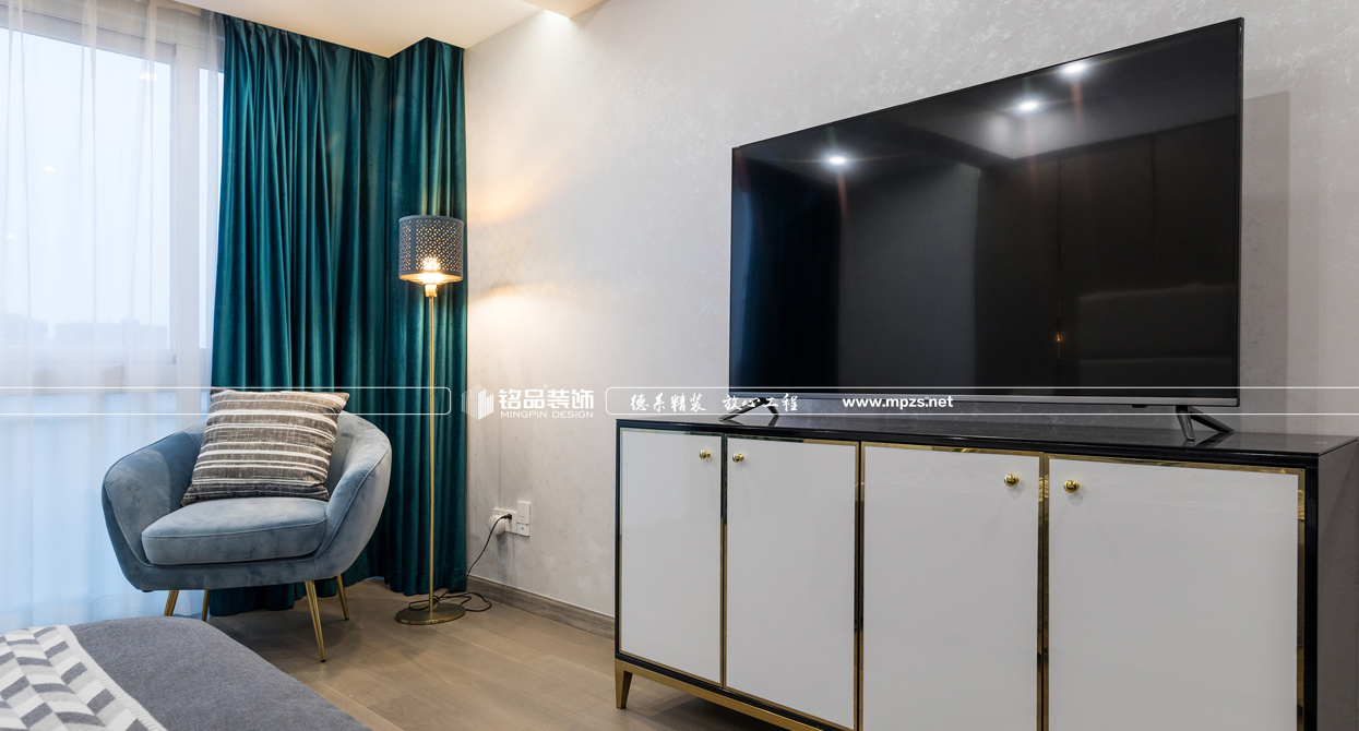 在設(shè)計(jì)上充分考慮其空間的局限性,選擇靈巧又不失穩(wěn)重的家具體量造型,為追求簡潔利落的視覺效果,在飾品上遵循少而精的原則,局部點(diǎn)綴,讓整件作品富有生命力。