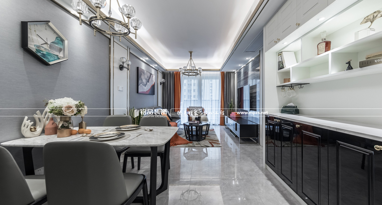 現(xiàn)代風格的裝修從設計出發(fā)點以人為本為中心,創(chuàng)造功能合理、舒適優(yōu)美、滿足人們物質(zhì)和精神生活需要的室內(nèi)環(huán)境!戶型結(jié)構(gòu)方形構(gòu)圖、黑鈦鑲嵌,格局是從三房改四房增加房屋面積的使用率,整體的色彩搭配用黑白灰+橙的配色。讓整體的裝修風格更具協(xié)調(diào)。室內(nèi)房屋裝修設計師最終以四房兩廳兩衛(wèi)一廚的格局,為業(yè)主帶來新的裝修效果體驗。