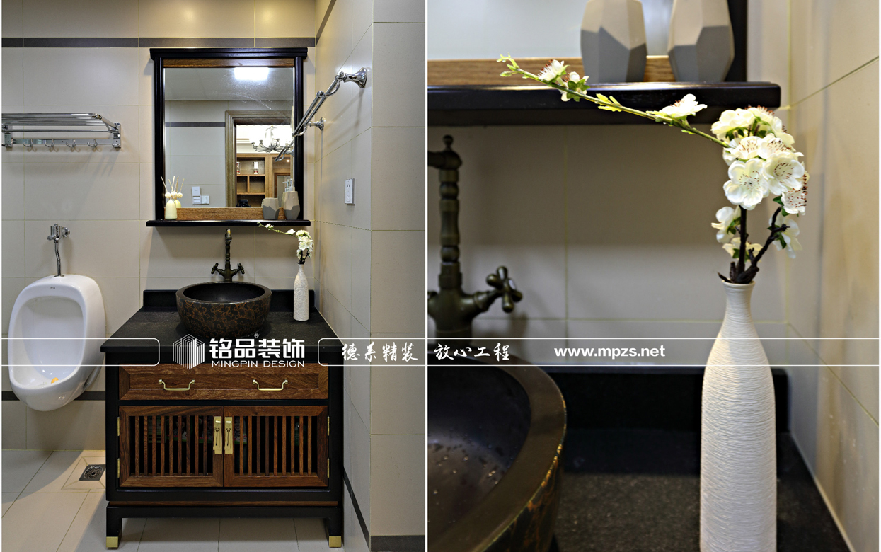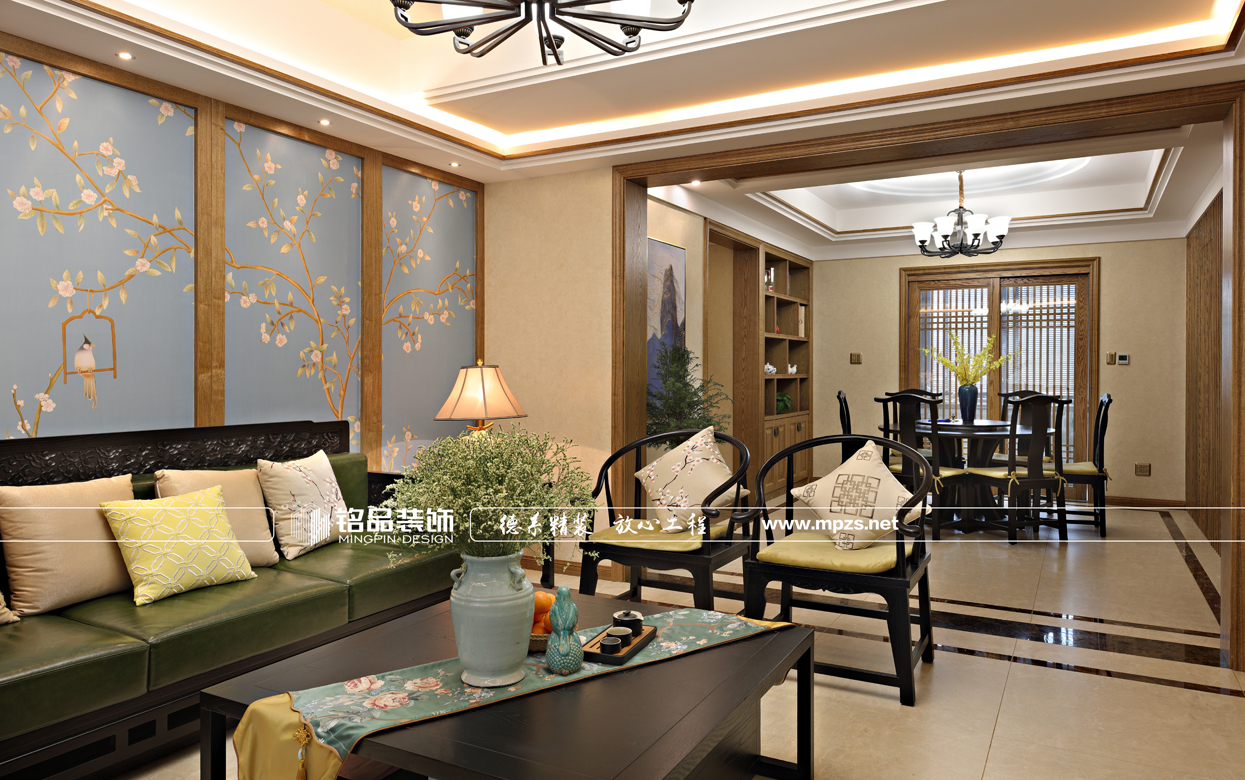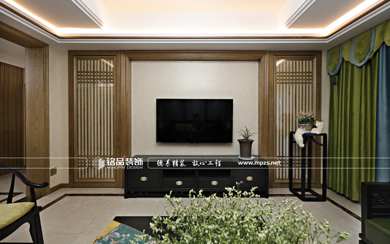 本案精髓簡(jiǎn)單沉穩(wěn)大氣,顏色用得大膽,大廳都是走原木風(fēng)的中式,之前的家具原本考慮紅咖色的,后來(lái)在最終下決定買家具的時(shí)候臨時(shí)改成黑色的家具,配上了大膽的軍綠的皮坐墊,整體放完家具,客戶一家人都很滿意