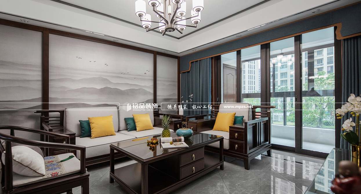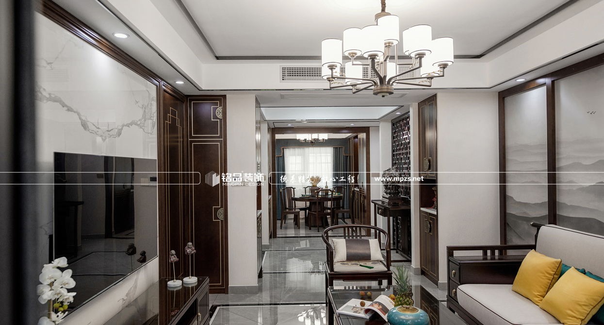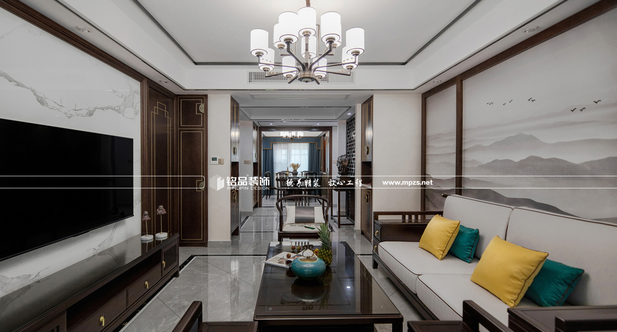 將傳統(tǒng)中式借景引入,山水背幅交融,依山傍水,渾然一體,懸浮在壁畫(huà)之中,浮然于水面之上,營(yíng)造只緣身在此山中的悠然,時(shí)虛時(shí)實(shí),銜接空間與空間的關(guān)系。金色的線條貫穿整個(gè)空間,勾勒出雅致的氛圍,散發(fā)出新中式獨(dú)有的貴氣。本戶型雖然是南北通透戶型 但是沒(méi)有玄關(guān) 進(jìn)門(mén)對(duì)過(guò)廊 后改造出方正的玄關(guān) 不僅對(duì)后面的衛(wèi)生間做了一個(gè)遮擋 也從視覺(jué)上做到進(jìn)門(mén)見(jiàn)景 見(jiàn)紅 寓意紅紅火火 鞋柜和展示柜的柜門(mén)和電視背景墻相呼應(yīng) 整體顏色統(tǒng)一 生活陽(yáng)臺(tái)改造在老人房外面 把移門(mén)改成窗戶 提高臥室的私密性