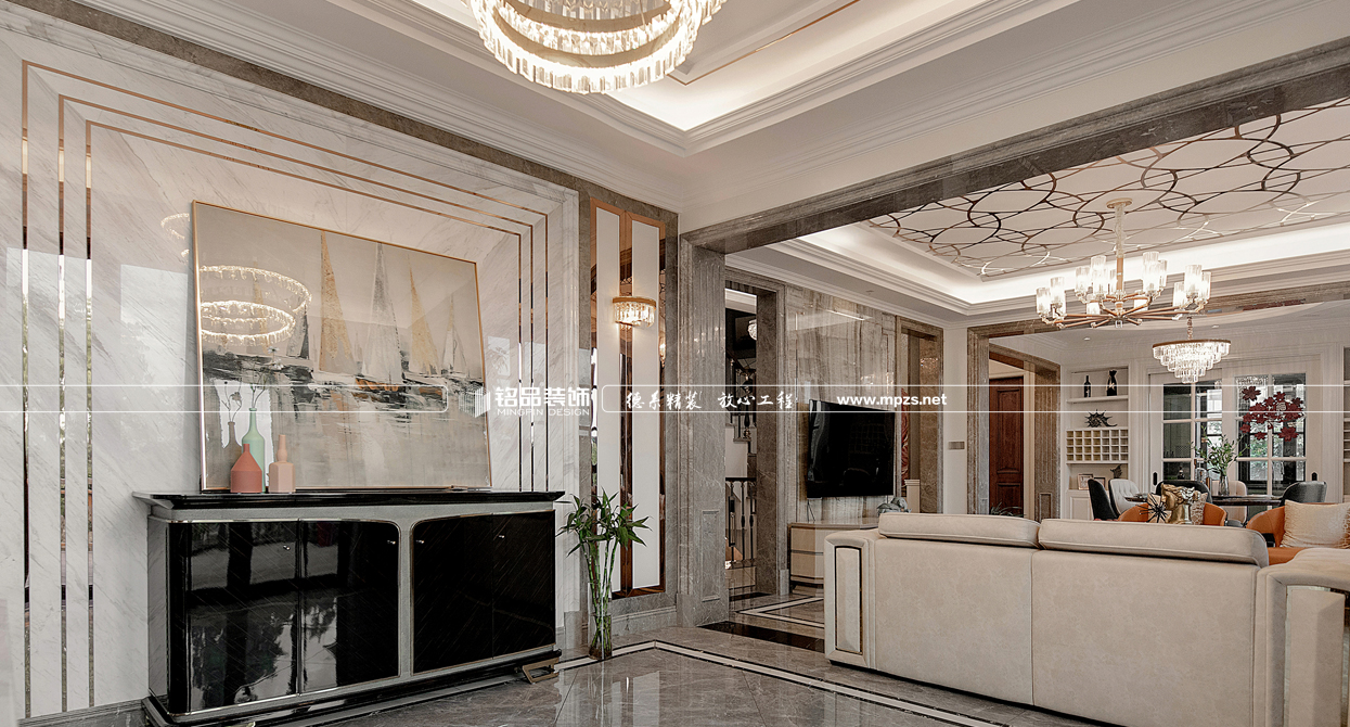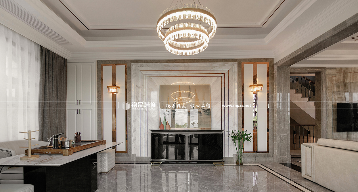 本案例房屋面積為430㎡,以新古典風(fēng)格裝修為主,色系以白色、金色作為空間的主色,空間以優(yōu)雅唯美裝飾搭配,彰顯出業(yè)主對(duì)居室環(huán)境的追求。