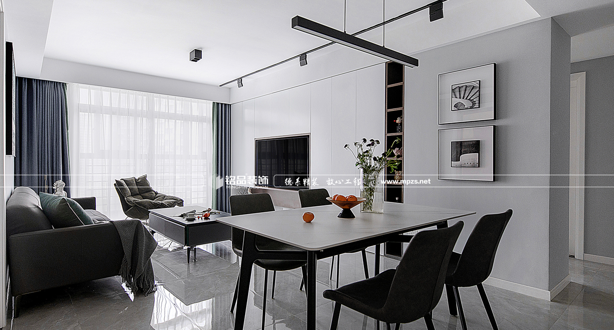 本案例房屋面積為120㎡,以現(xiàn)代風格裝修為主,色系以黑色作為空間的主色,主要突出空間簡約安靜的氣息