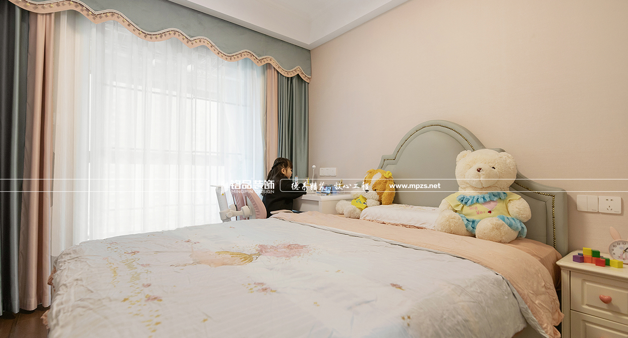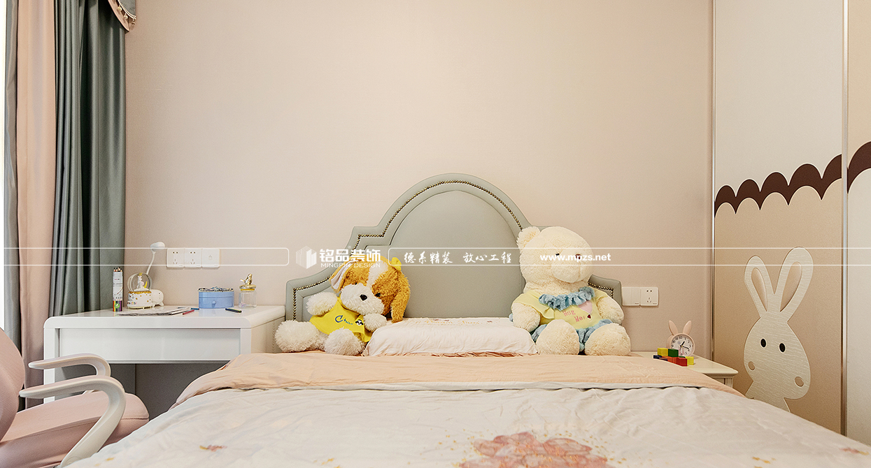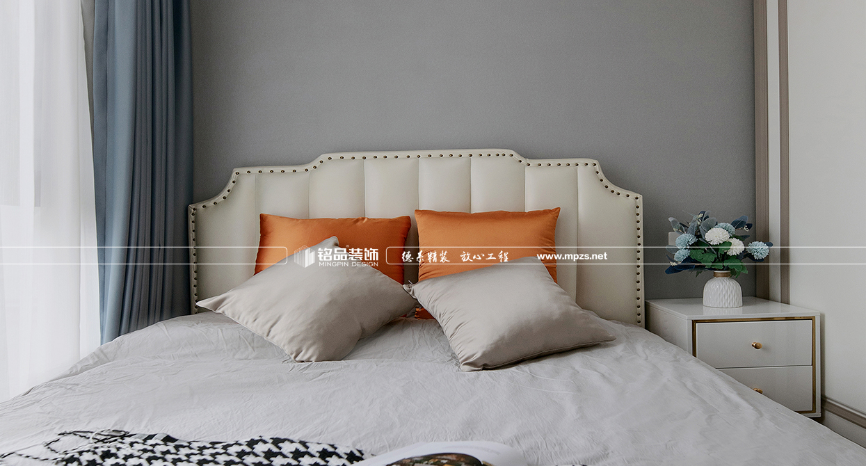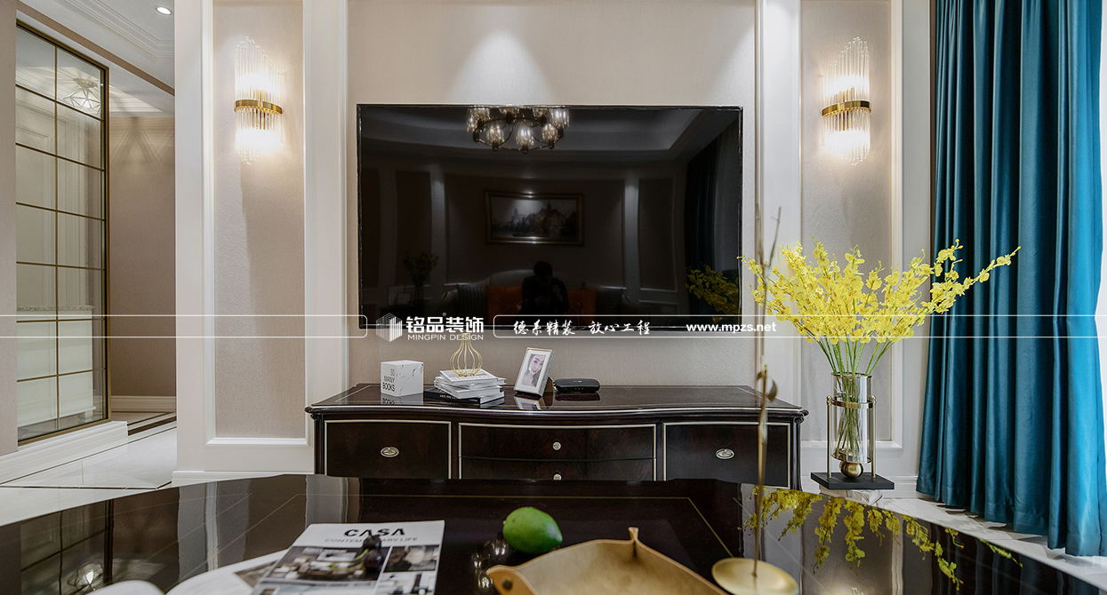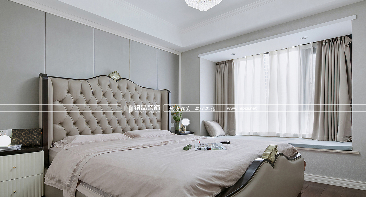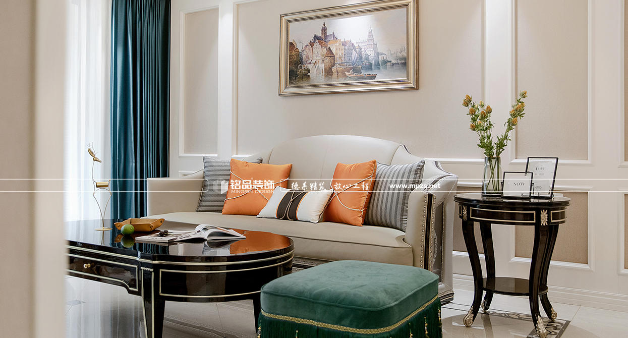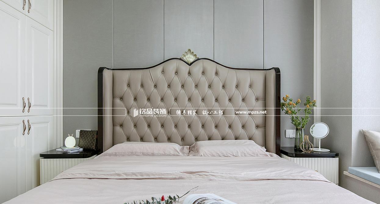 本案例房屋面積為105㎡,以美式風(fēng)格裝修為主,色系以米色作為空間的主色,加以金屬色點綴,使空間整體溫馨而又不失奢華,客廳筒燈加主燈設(shè)計使空間光線最大化,提升空間通透感