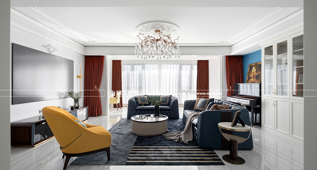 本套案例剛開始確定的風(fēng)格是新中式風(fēng)格,但是在施工中因?yàn)闃I(yè)主的一場夢,徹底改變了裝修風(fēng)格,古韻得中式改成了新潮的法式,這是極大的設(shè)計(jì)挑戰(zhàn)。后以法式風(fēng)格裝修為主,法系色彩裝飾,搭配個(gè)性化家具裝飾,優(yōu)雅又奢華,法式風(fēng)十足
