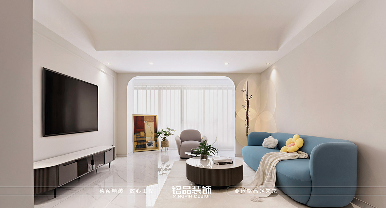 業(yè)主是還在奮斗的90后,剛買了新房,裝修預算并不是很充足,當時就想著讓業(yè)主花最少的錢裝出喜歡的效果,再加上客戶有個之前就買來的藍色沙發(fā),所以在顏色搭配上也會盡量讓這個沙發(fā)融和。格局上,業(yè)主想在主臥做一個小的書房,滿足老公打游戲的愿望,格局就做了調(diào)整。另外孩子的房間,飄窗打掉,做一整排書桌