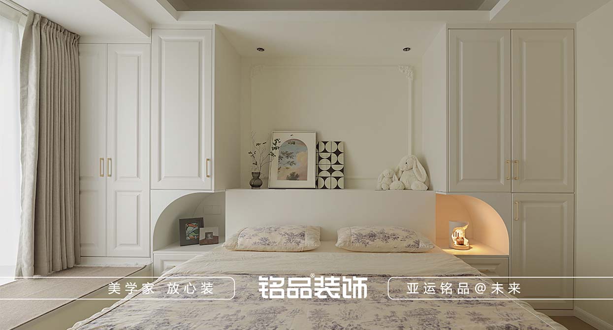 進(jìn)門空間營造了獨立玄關(guān)空間,原廚房移門改向餐廳,嵌入冰箱及高柜,增加儲物的同時,使用更便利;客廳與陽臺打通,使空間更通透,做在沙發(fā)就能眺望遠(yuǎn)處的風(fēng)景,墻面、柜門、房門采用法式線條,凸顯出浪漫氣質(zhì);原地磚拆除更換原木色地板,促使整個空間更自然,一打開家門就能放松下來,臥室的房門全部更換純潔的白色造型門,讓浪漫更升級。過道的拱形埡口,目之所及皆是精致;主衛(wèi)改淋浴為浴缸,寶寶泡澡更方便。