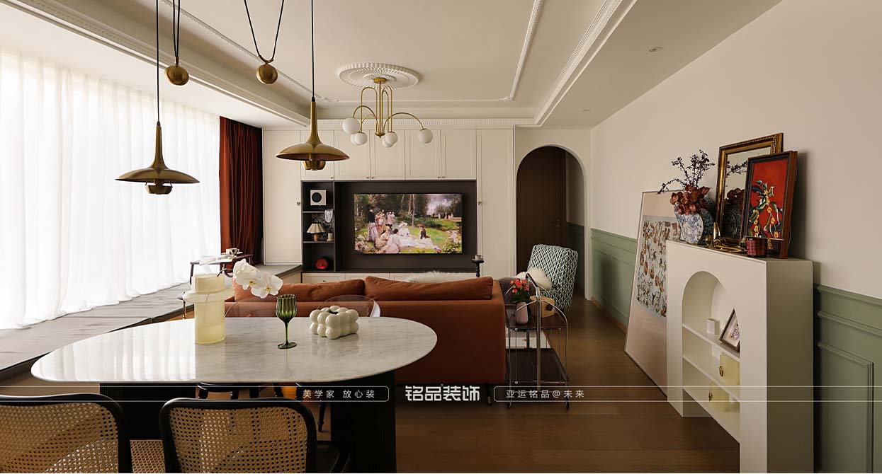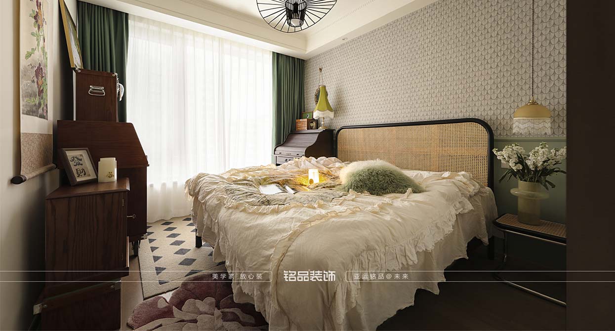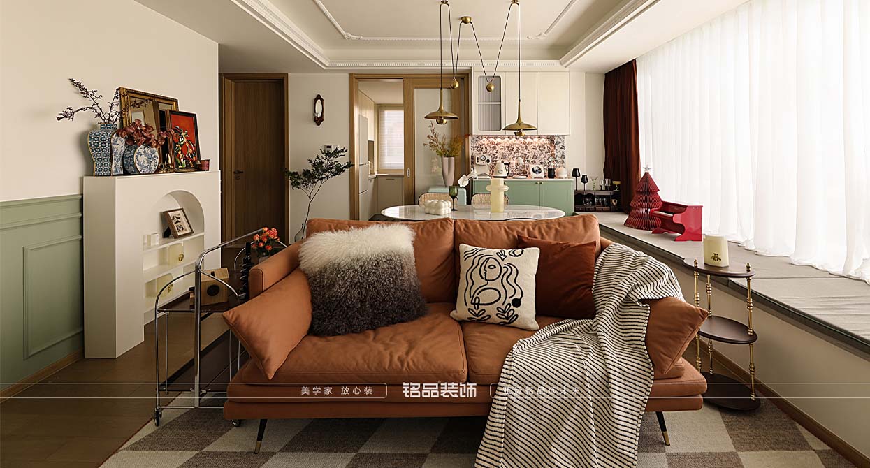 本作品是中古風,色系以清新莫蘭迪色系為主,加上橙色綠色的點綴,點到為止的搭配氛圍,簡單、方便、舒適的生活理念