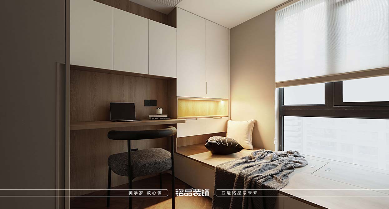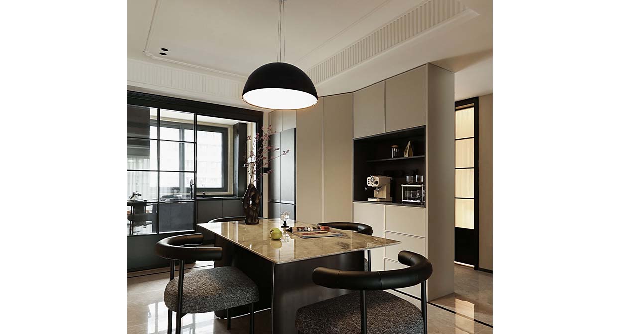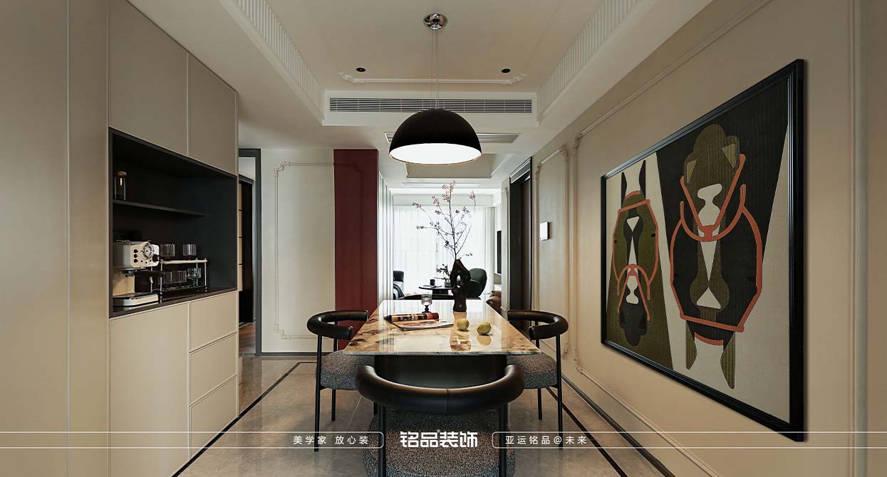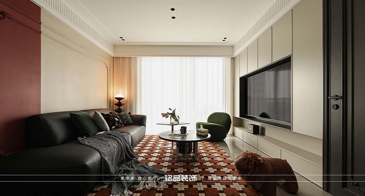 望錢塘云莊裝修設計亮點:三口之家一長輩,女業(yè)主審美非常在線,喜歡復古以及經(jīng)典懷舊元素,同時又不失摩登氣息。女業(yè)主平日宅家時喜歡追劇,兒子有很多手辦及玩具,需要展示區(qū)域和大量收納空間。玄關單和客廳如果是單獨區(qū)分開,各個區(qū)域劃分明確將會顯得比較局促,如果將其打通為一體,入戶擁有有玄關的造景,進門后視覺能與客廳連貫為一個空間,所以設計師將入戶玄關和背景墻連通一體,把隱藏儲物柜與沙發(fā)背景用弧形造型設計來貫通兩個空間。女業(yè)主和男業(yè)主也會在家里日常辦公,同時也能夠兼顧休息以及儲物功能,北面房間設計為多功能榻榻米房,就能夠滿足辦公、收納以及臨時休息的區(qū)域,空間利用最大化。