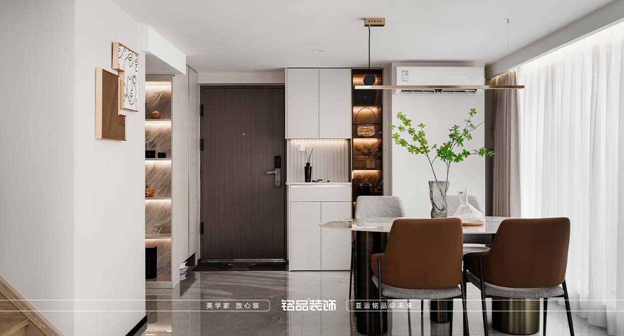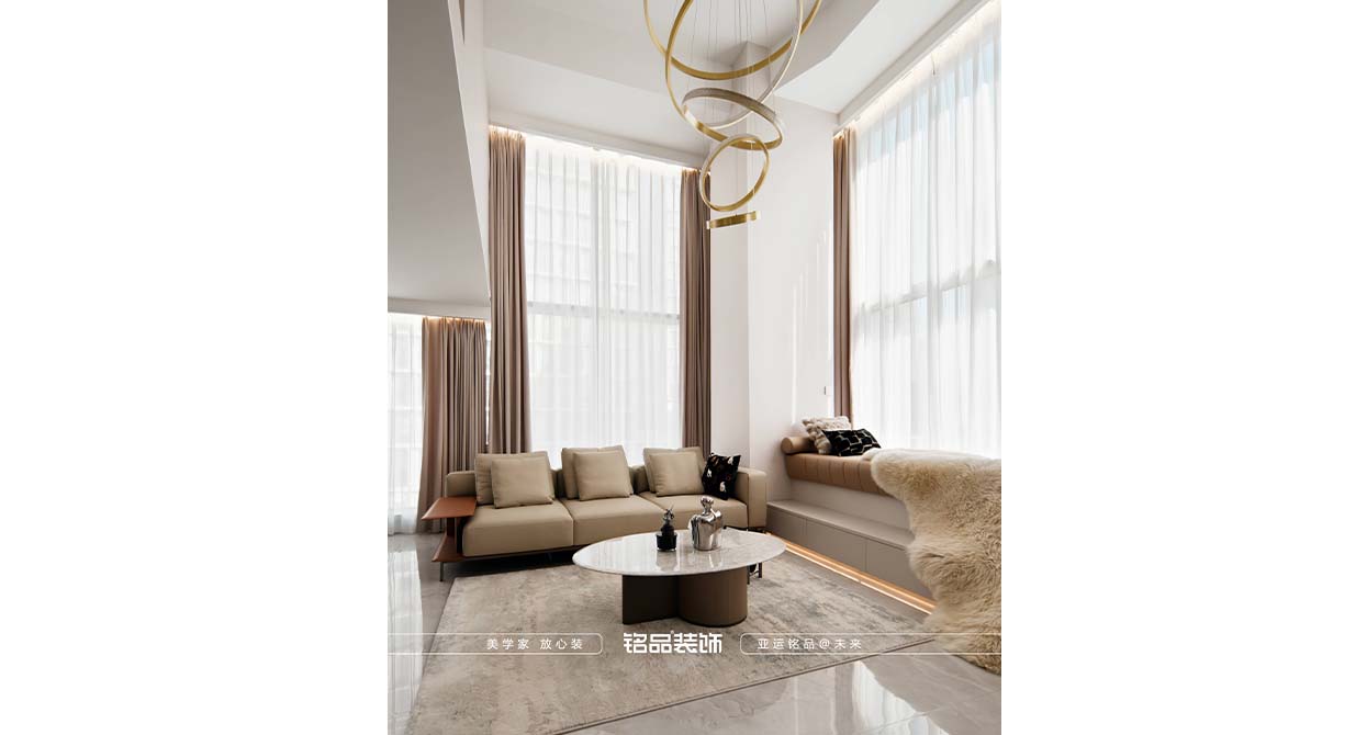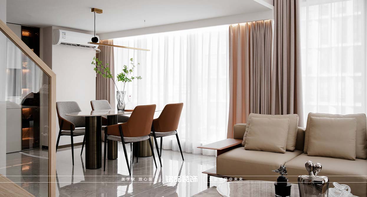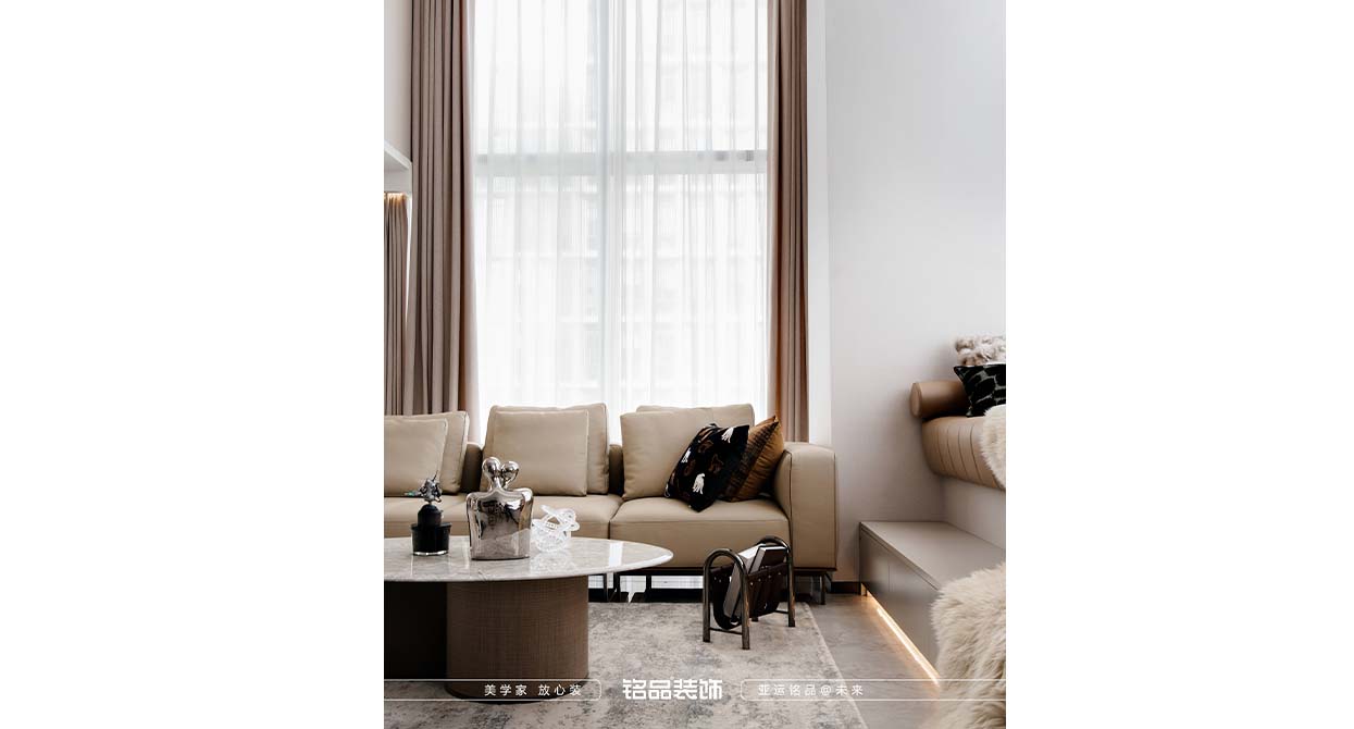 本套案例業(yè)主對黑色很不喜歡,希望家里黑色出現(xiàn)越少越好,很多金屬材質(zhì)采用了金色的元素,風(fēng)格確定為現(xiàn)代輕奢,現(xiàn)代輕奢不止是風(fēng)格,更是一種生活態(tài)度,精致與高級的碰撞,暖色系搭配金屬質(zhì)感點綴,營造滿滿的輕奢感,挑空的客廳使用造型燈具與運用局改添加的輔助燈,光源有上中下、前中后,增加空間氛圍及層次感,潘多拉巖板與皮布藝術(shù)的融合搭配,賦予空間一份雅致。