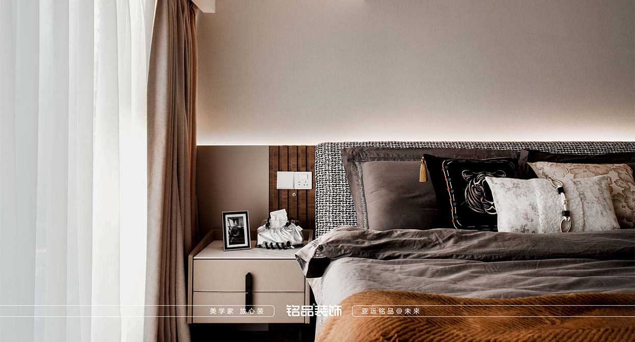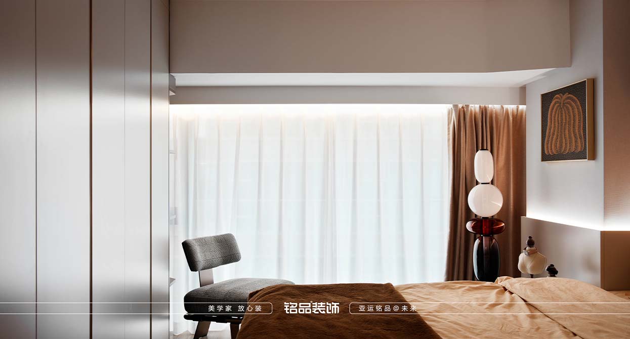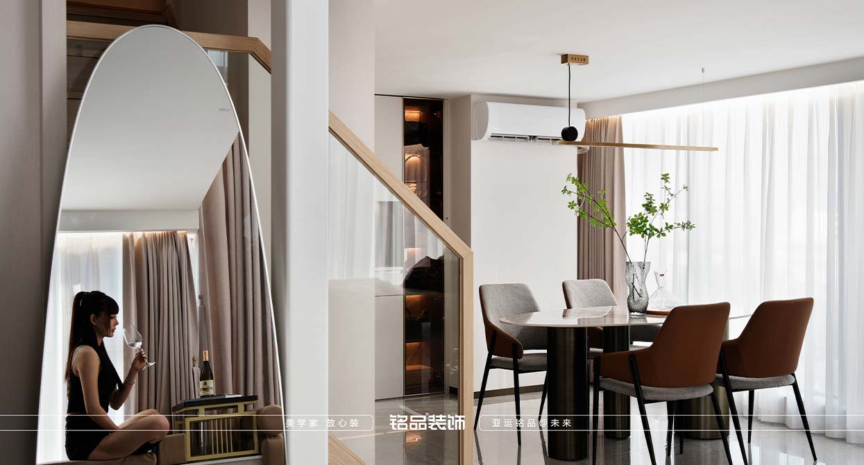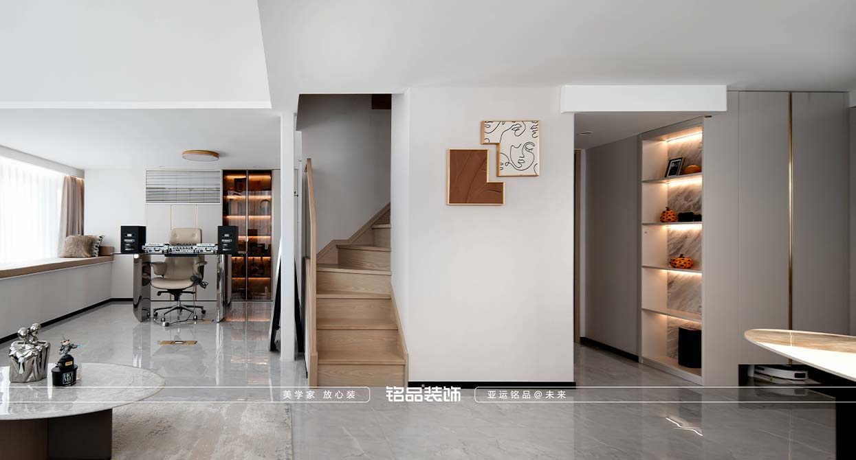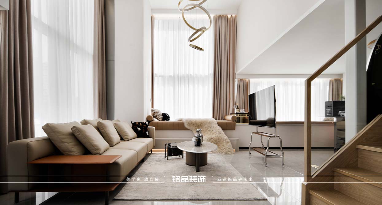 本套案例業(yè)主對黑色很不喜歡,希望家里黑色出現(xiàn)越少越好,很多金屬材質(zhì)采用了金色的元素,風(fēng)格確定為現(xiàn)代輕奢,現(xiàn)代輕奢不止是風(fēng)格,更是一種生活態(tài)度,精致與高級的碰撞,暖色系搭配金屬質(zhì)感點綴,營造滿滿的輕奢感,挑空的客廳使用造型燈具與運用局改添加的輔助燈,光源有上中下、前中后,增加空間氛圍及層次感,潘多拉巖板與皮布藝術(shù)的融合搭配,賦予空間一份雅致。