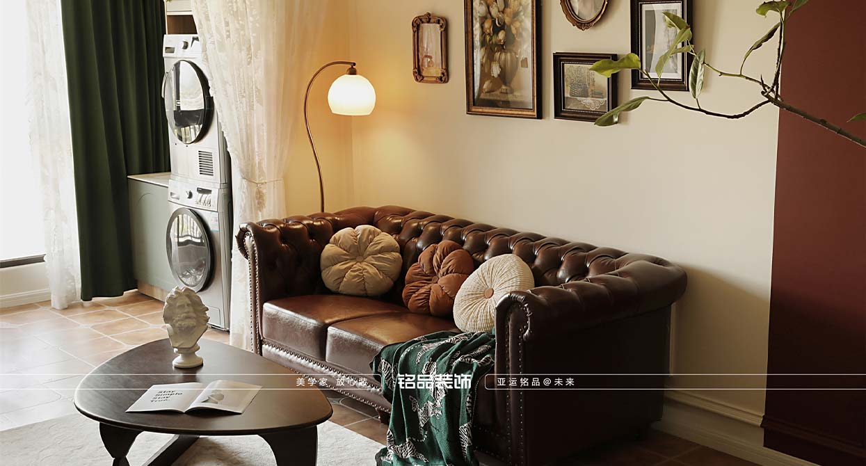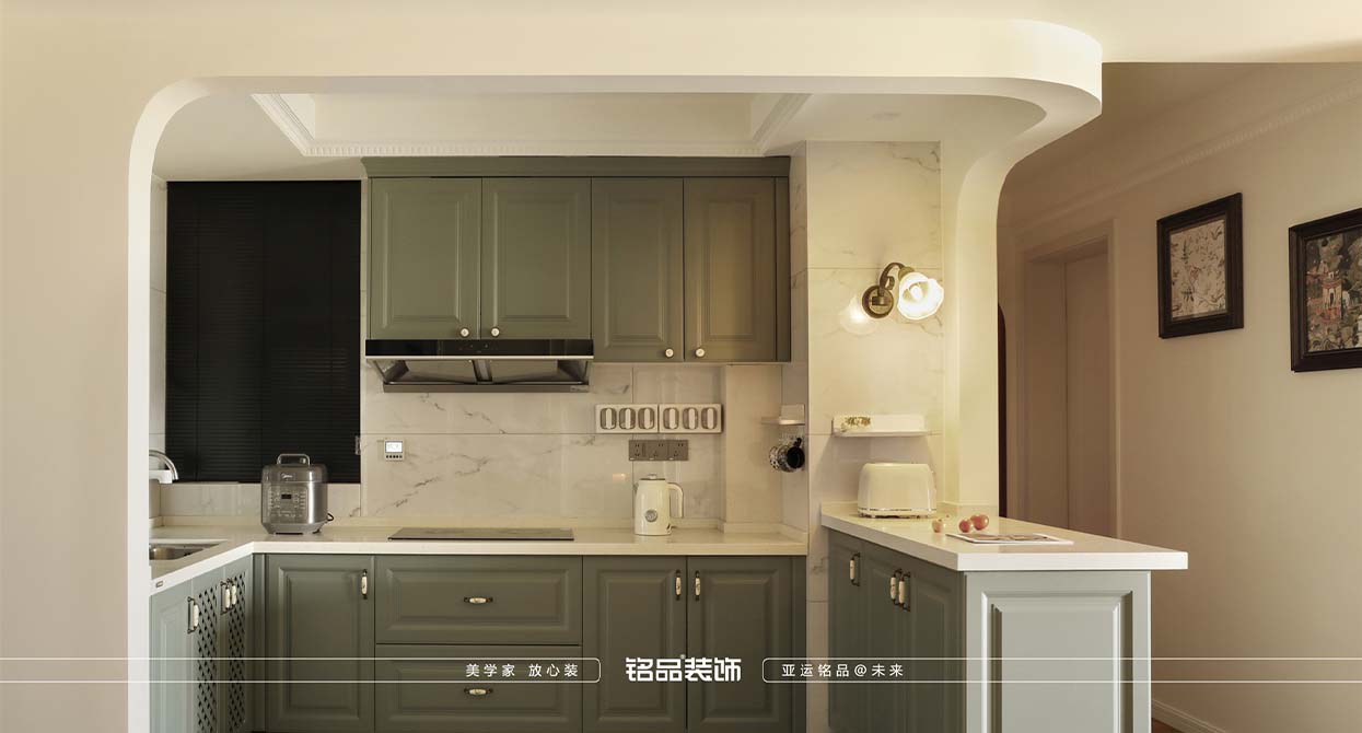 廚房是做了開放式廚房,開放式廚房是把小戶型做大的常用“小伎倆”,空間的視線更加開闊。色彩上,客廳用了紅色搭配綠色,使得整個空間更加有魅力。房子中,紅色是我們的主題,隨處可見,在沙發(fā)背景,在衛(wèi)生間,在主臥。也許主人也懷揣著浪漫,擁有著使不完的活力和熱情吧。