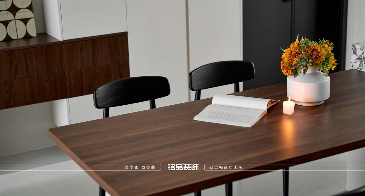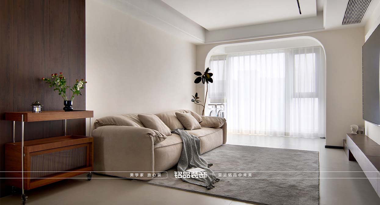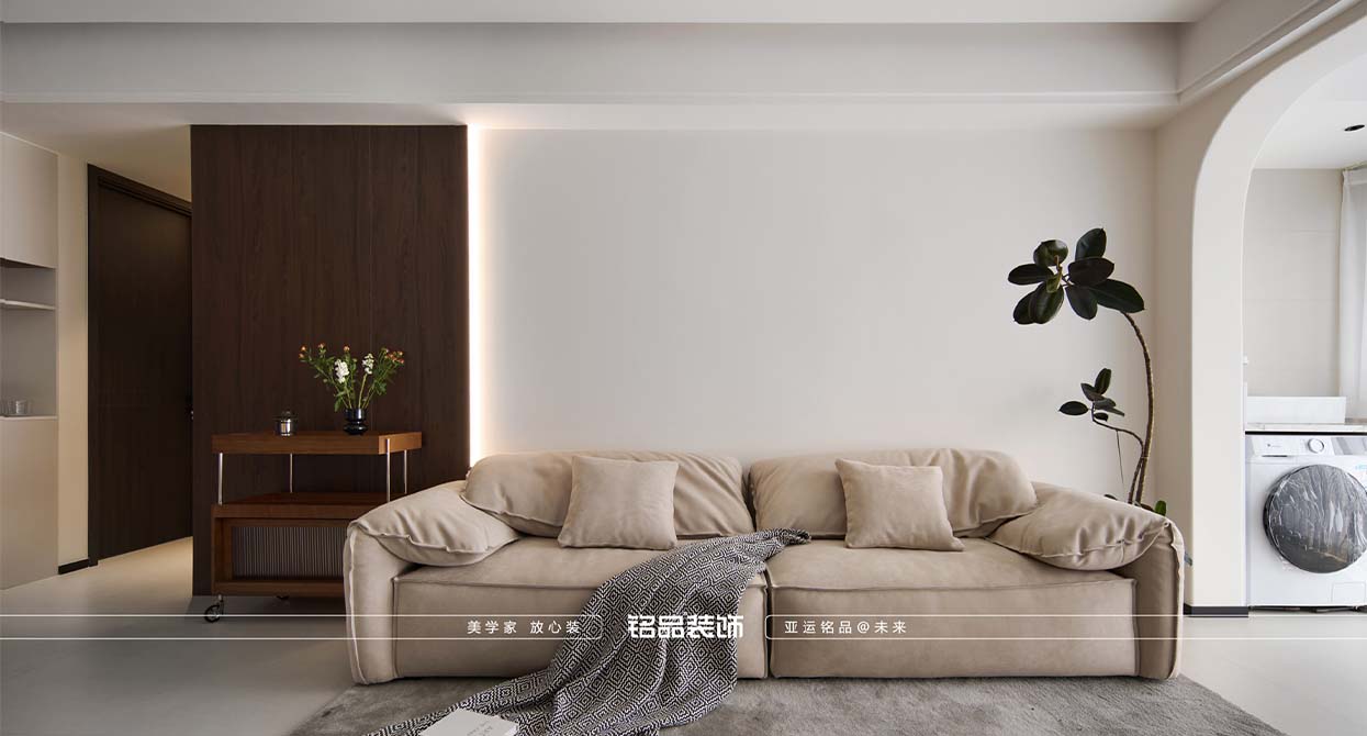 沙發(fā)背景用胡桃木飾面做個層次,即起到裝飾效果,也讓空間更加豐富