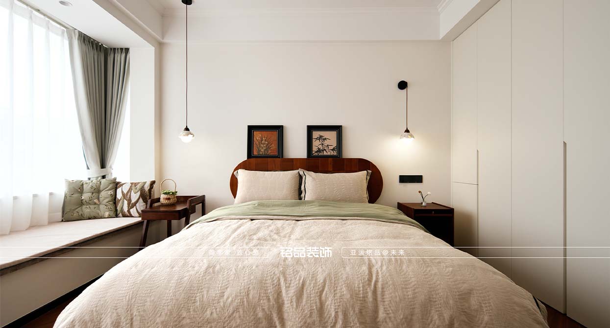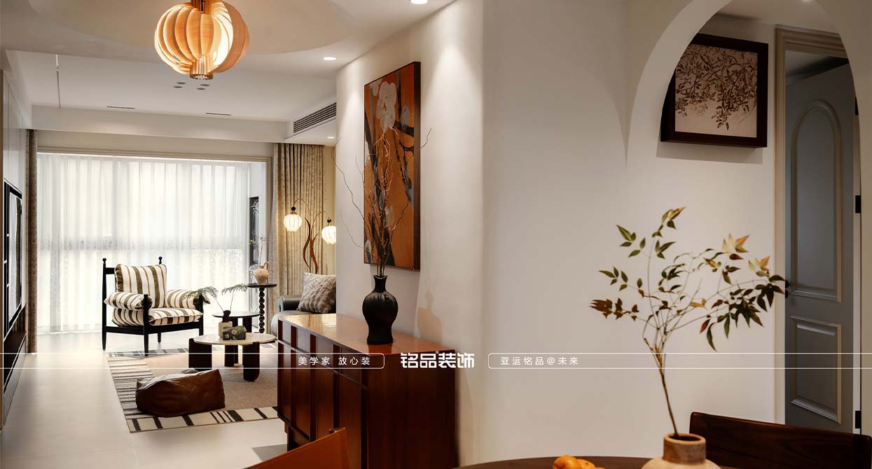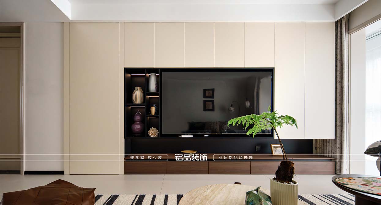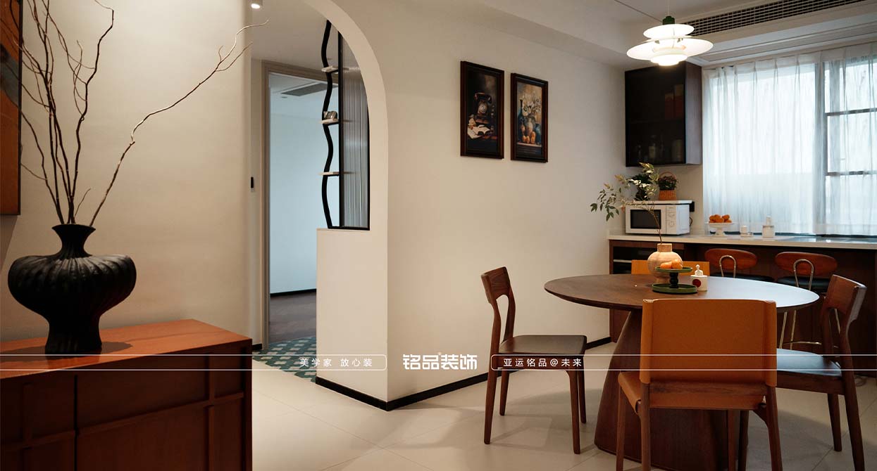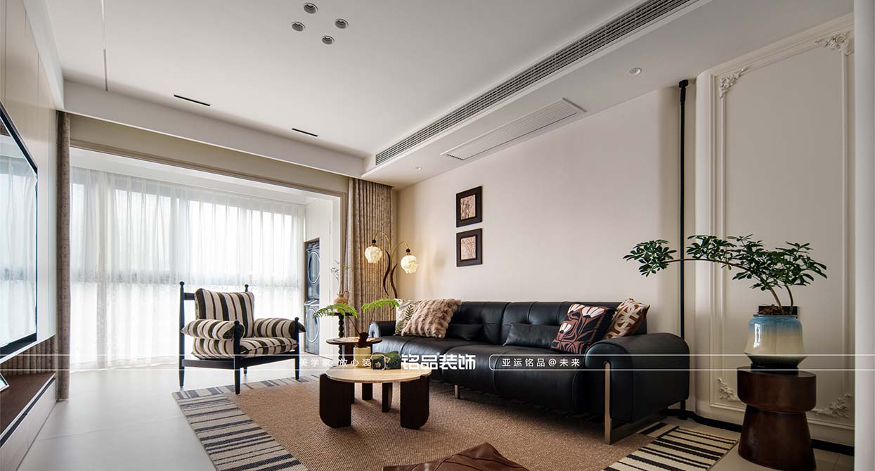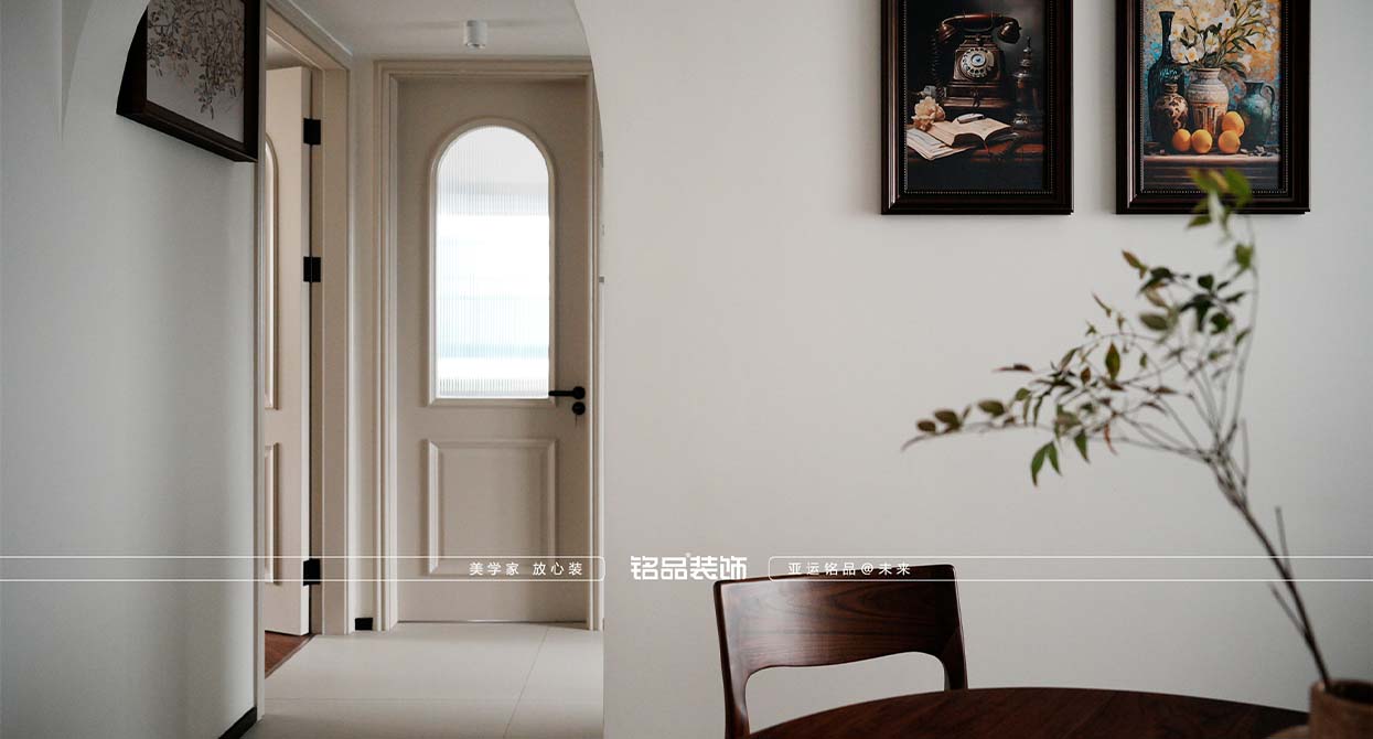 璟濤灣裝修米色柔光磚搭配奶白色乳膠漆定調(diào)輕法式的明亮和浪漫,石膏線和燈盤(pán)的運(yùn)用讓法式的韻味躍然而出,無(wú)主燈的設(shè)計(jì)更讓空間增加一定的現(xiàn)代感,不拘泥于傳統(tǒng)的法式。背景墻的滿柜+隱形門(mén)的設(shè)計(jì),既滿足了儲(chǔ)物的需求又滿足了美觀的要求,一舉兩得。家具的選擇上選用黑色+胡桃木的配色,也是法式軟裝的不二選擇。