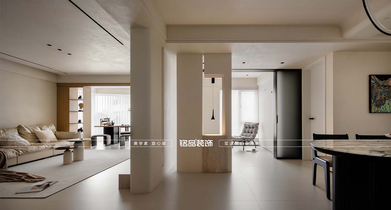 白馬公寓裝修完善符合業(yè)主的居住空能的情況下,讓空間更加打開(kāi)通透、高級(jí)、美觀。進(jìn)門(mén)玄關(guān)運(yùn)用一些僵住手法設(shè)計(jì),既有空間感又有造型感。原本獨(dú)立的四個(gè)房間,客戶(hù)需求想要一個(gè)開(kāi)闊的大平層既視感,我把第四個(gè)房間做成開(kāi)合空間平時(shí)可以作為業(yè)主的獨(dú)立休閑下午茶區(qū)域,廚房空間利用原陽(yáng)臺(tái)空間做個(gè)補(bǔ)充擴(kuò)大,光線更加充足直接,餐廳在廚房調(diào)整的情況下,第四個(gè)空間的打開(kāi)變得更大開(kāi)闊和通透??蛷d區(qū)域劃分一部分作為一個(gè)茶室。主臥在客衛(wèi)的調(diào)整下多出了衣帽間的空間。女兒房和兒子房間飄窗的設(shè)計(jì)讓兩個(gè)房間收納更加多的情況下多了幾分溫馨感。