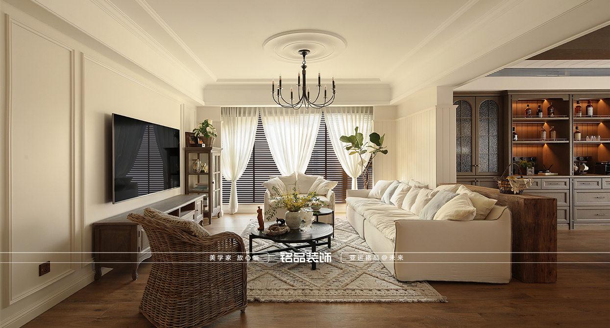 · 線條與結(jié)構(gòu):雕花燈盤、對稱門廊、人字拼木地板、拱形門洞。