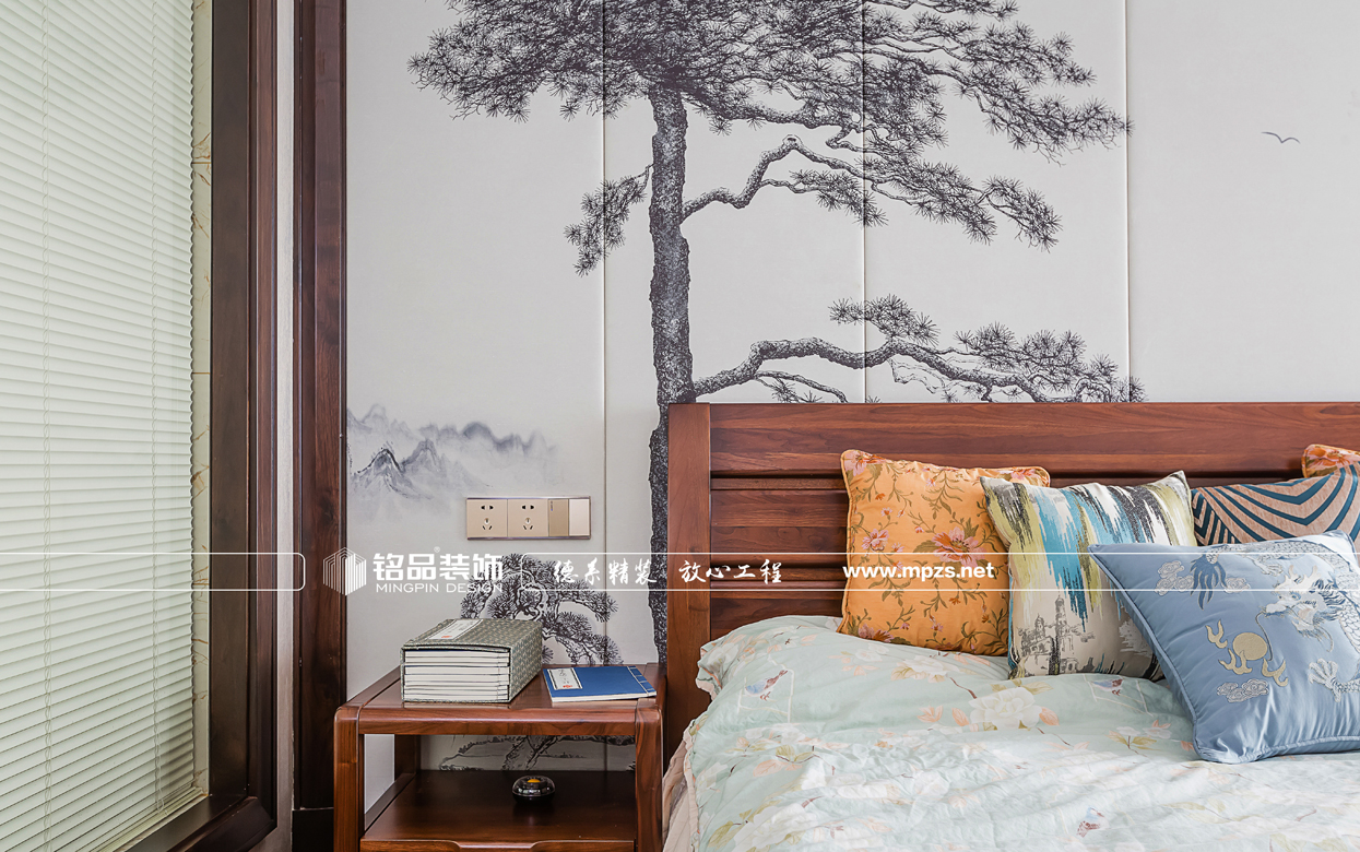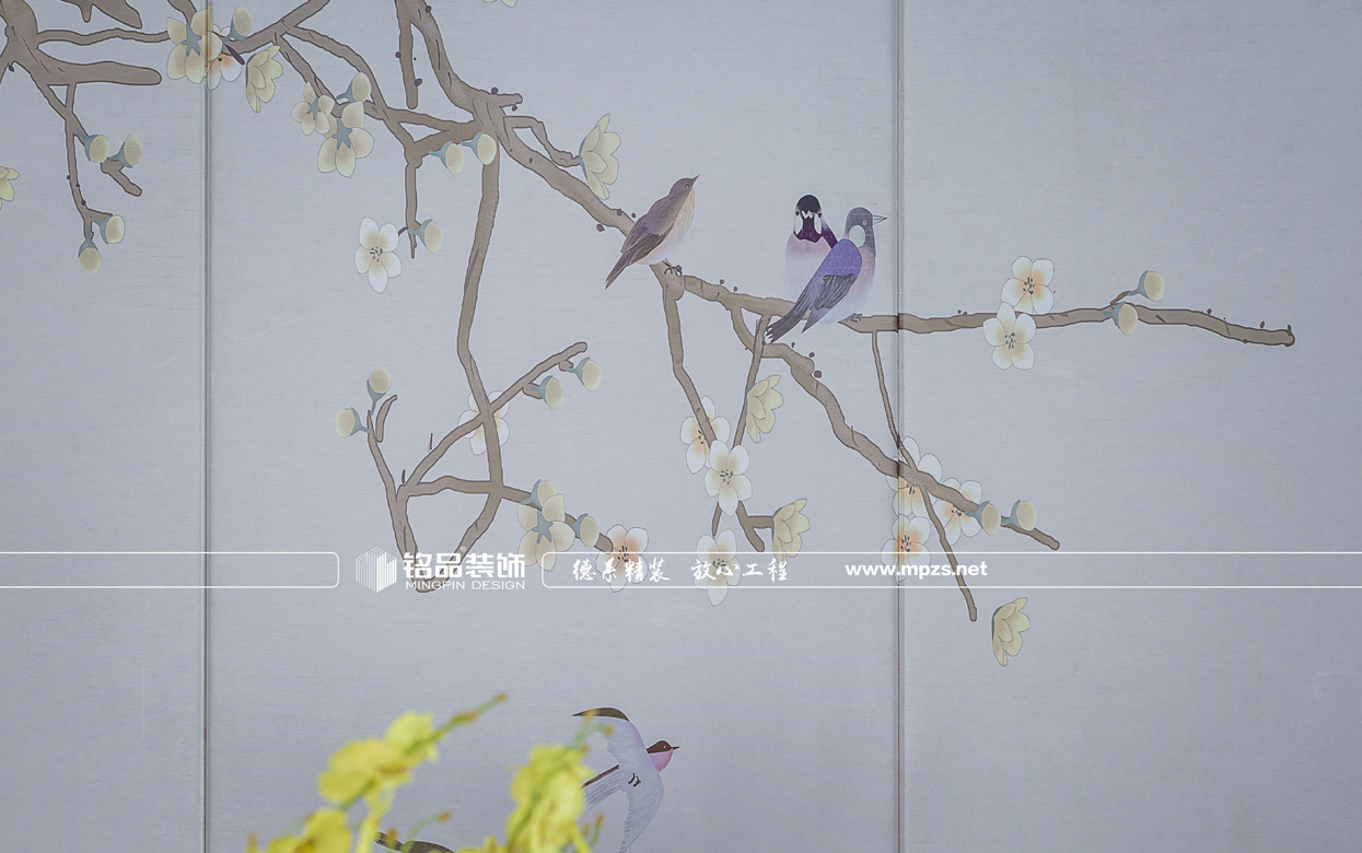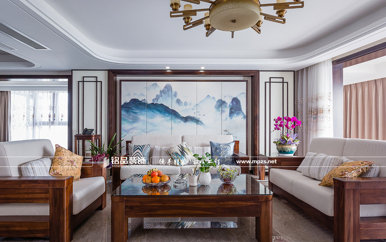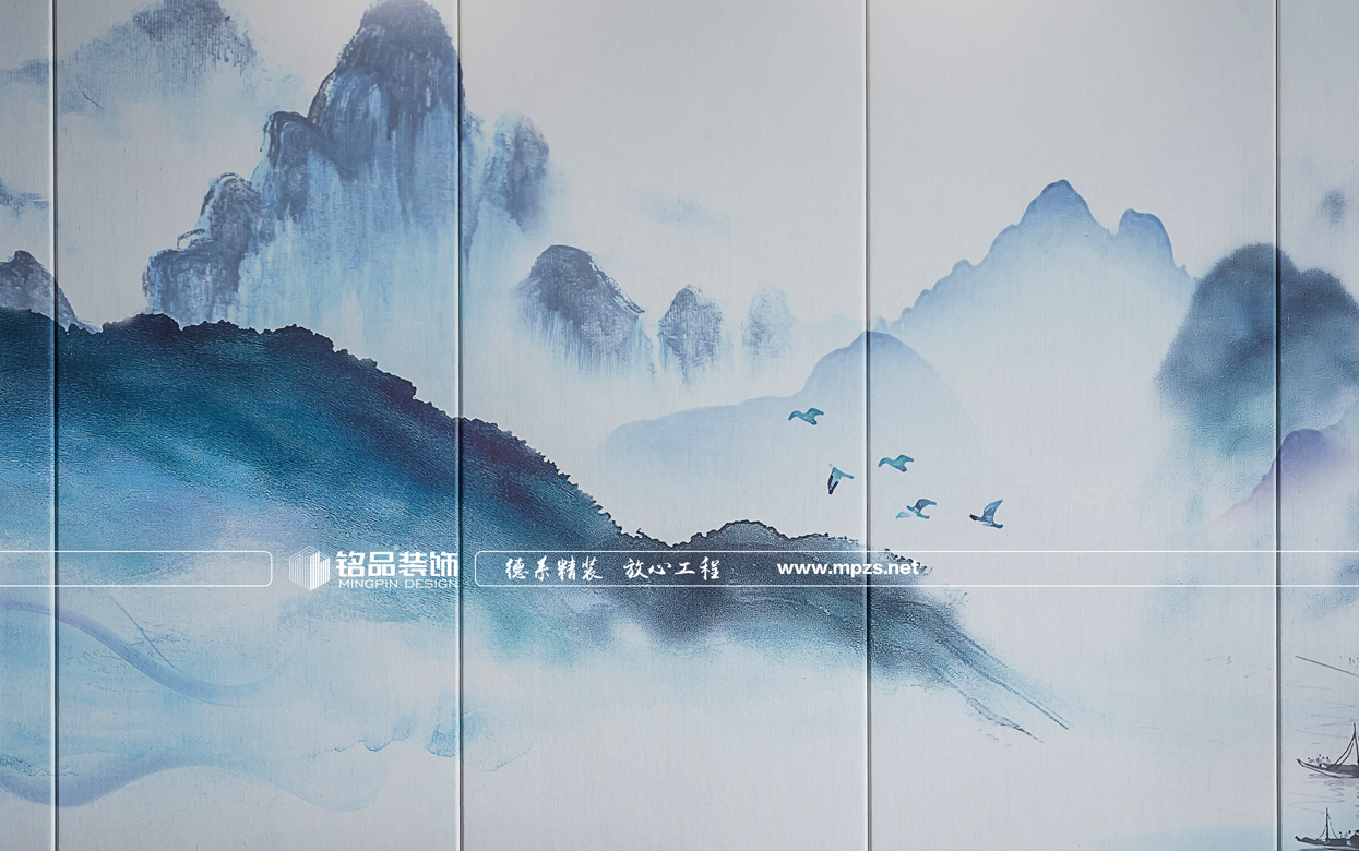 采擷古人的情懷,對這個(gè)空間,設(shè)計(jì)師融入了雅士的風(fēng)骨,完美呈現(xiàn)出儒雅新中式的靈魂。延續(xù)硬裝設(shè)計(jì)與材質(zhì)上奠定的雅致,在沉穩(wěn)的空間基調(diào)上,植入生動(dòng)的軟裝表現(xiàn)手法。以步步帶入的層疊關(guān)系逐步渲染出整個(gè)空間的淡雅與優(yōu)美??筒蛷d大幅潑彩山水畫是繼承和發(fā)展了中國傳統(tǒng)山水畫,增加了新的潑彩技法和表現(xiàn)形式,給人以耳目一新的感覺,它具有原創(chuàng)性、唯一性、不可復(fù)制性、藝術(shù)性和收藏性。