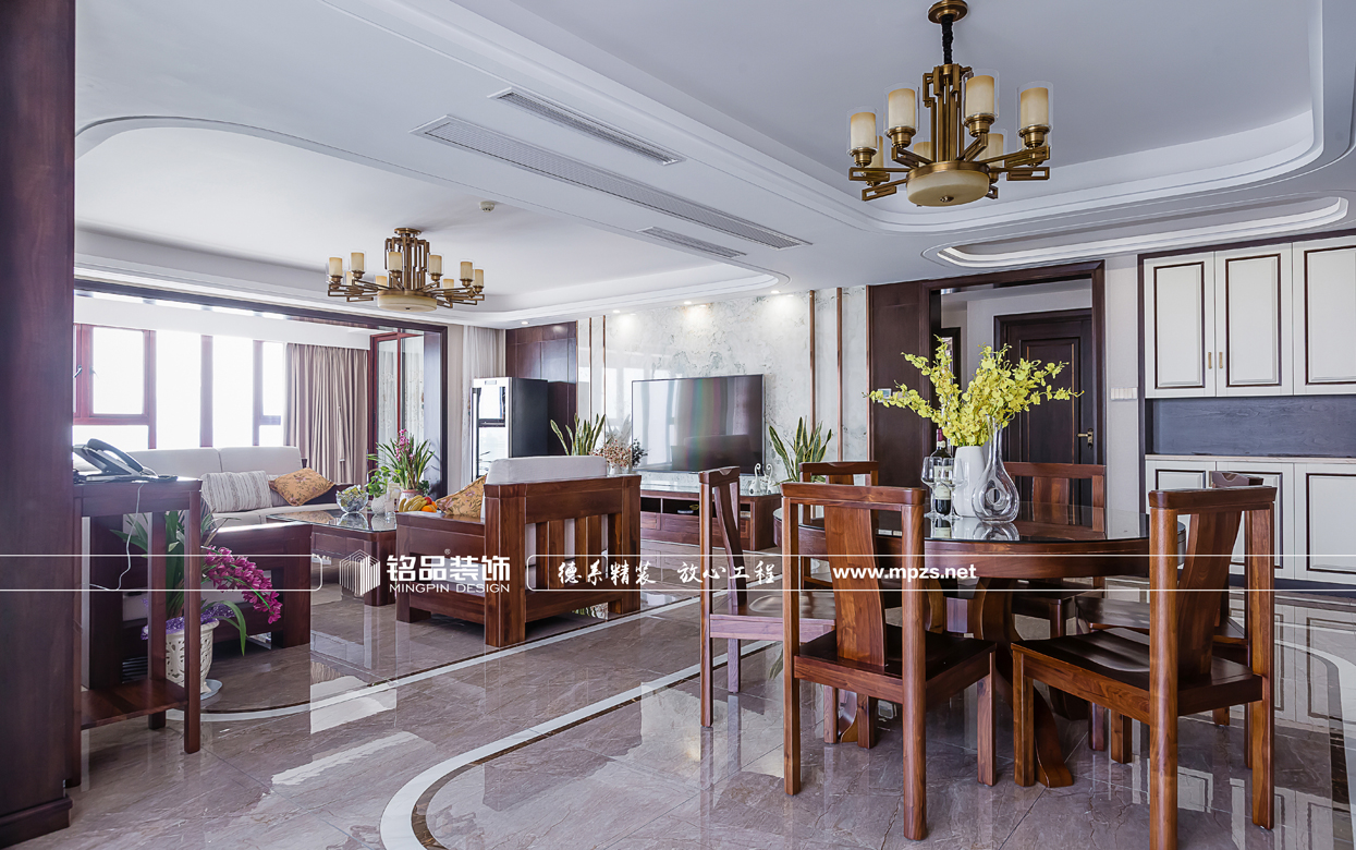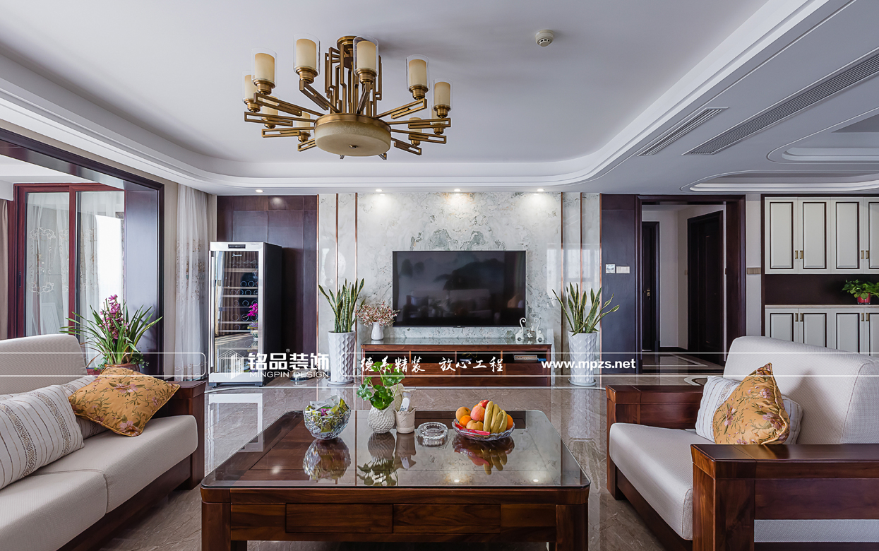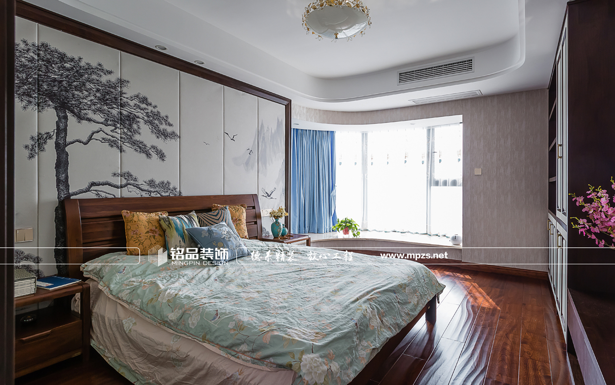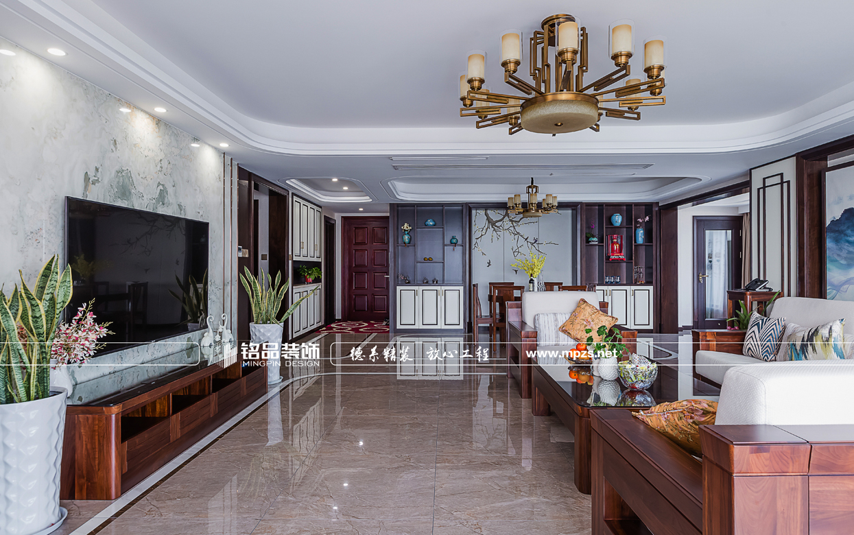 采擷古人的情懷,對這個(gè)空間,設(shè)計(jì)師融入了雅士的風(fēng)骨,完美呈現(xiàn)出儒雅新中式的靈魂。延續(xù)硬裝設(shè)計(jì)與材質(zhì)上奠定的雅致,在沉穩(wěn)的空間基調(diào)上,植入生動(dòng)的軟裝表現(xiàn)手法。以步步帶入的層疊關(guān)系逐步渲染出整個(gè)空間的淡雅與優(yōu)美??筒蛷d大幅潑彩山水畫是繼承和發(fā)展了中國傳統(tǒng)山水畫,增加了新的潑彩技法和表現(xiàn)形式,給人以耳目一新的感覺,它具有原創(chuàng)性、唯一性、不可復(fù)制性、藝術(shù)性和收藏性。