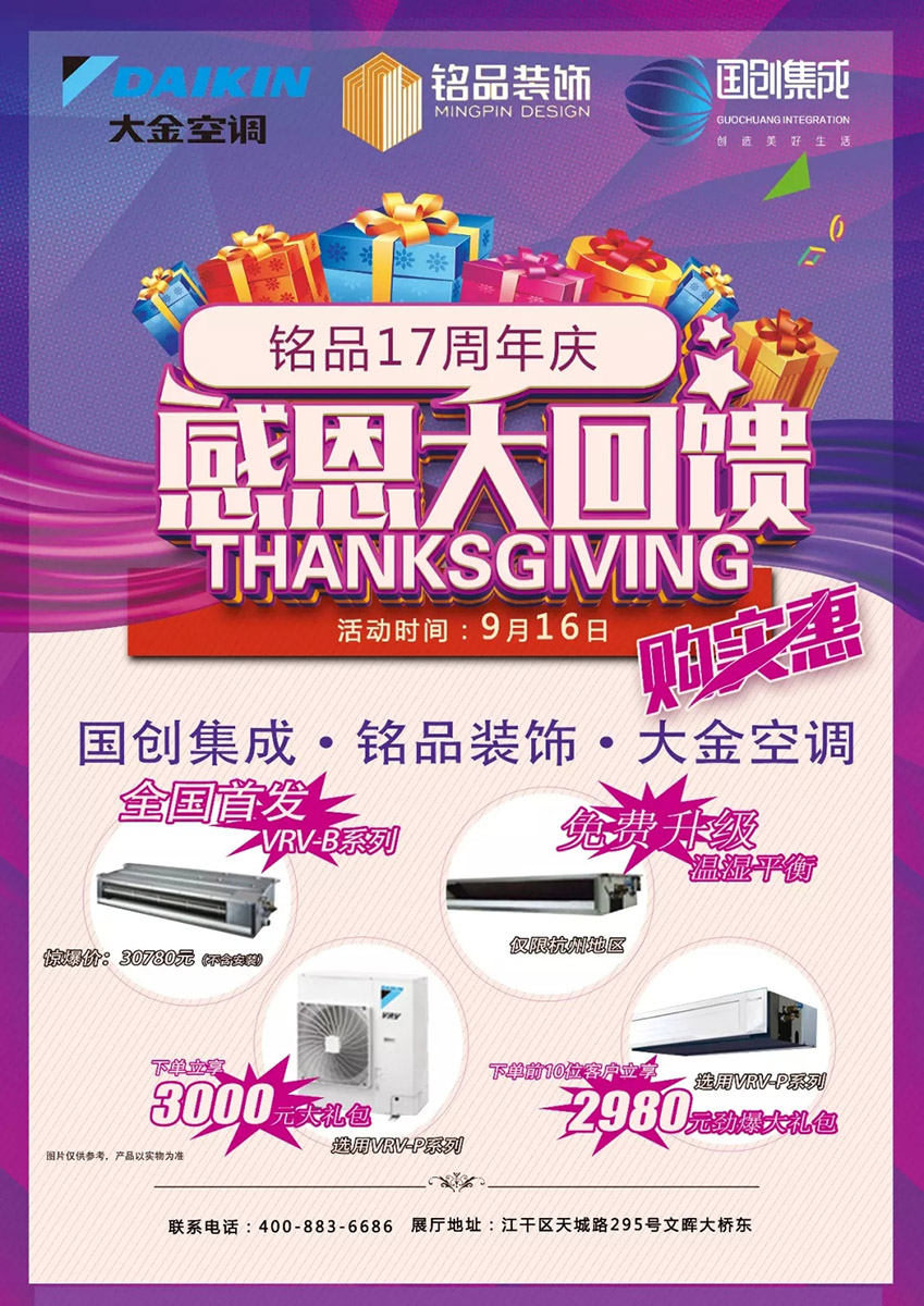 當(dāng)銘品17年慶遇上大金空調(diào)VRV-B,碰撞出燦爛的盛惠!