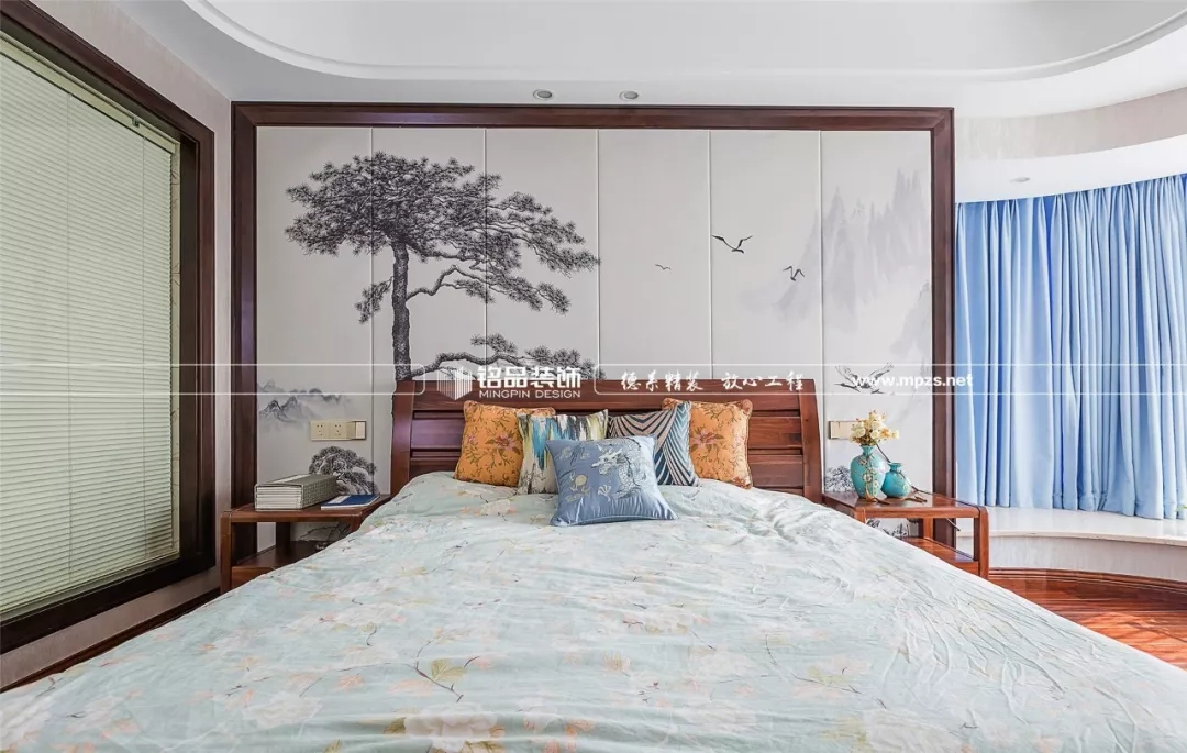 進入臥室,一股東方氣韻撲面而來,傲然立于云層中的松柏圖烘托出主人的文雅與風度。