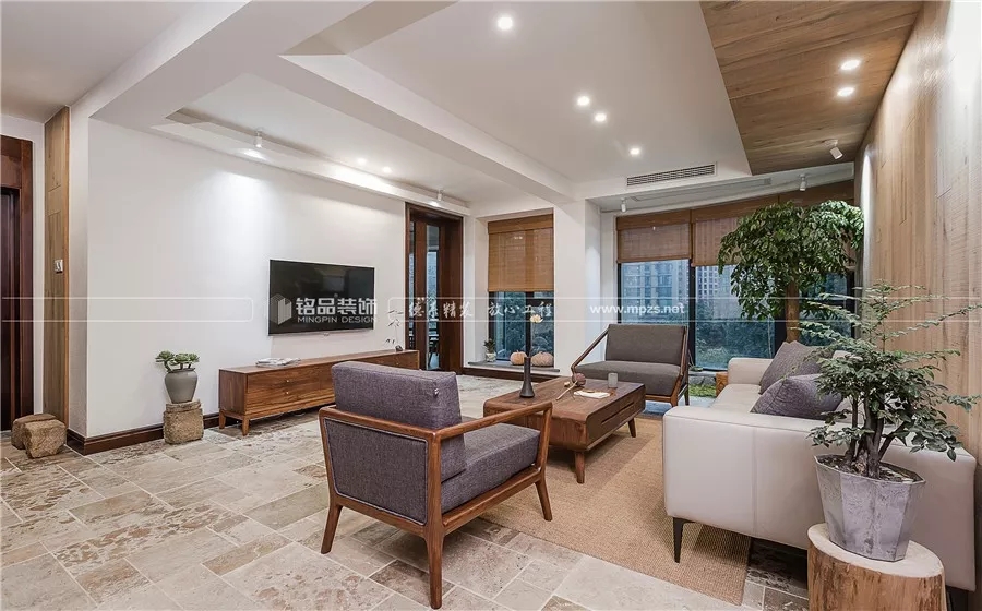棉麻布藝的沙發(fā)和椅子,既有高顏值,也有使用時的舒適感。實木打造的茶幾溫潤自然,造型獨特,似方又似圓,充滿設(shè)計感,同時又能有效地避免磕碰。