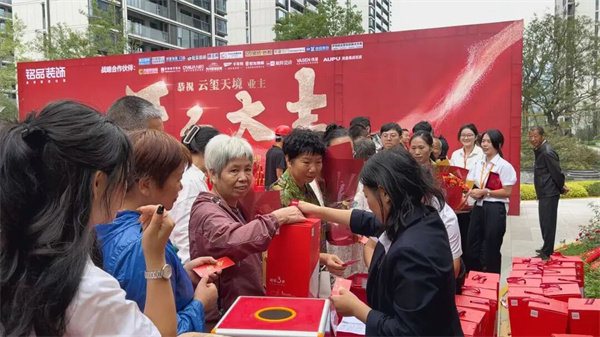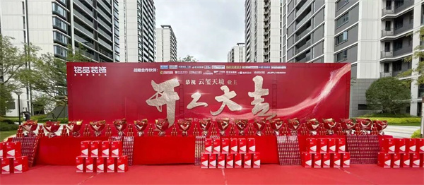 云璽天境小區(qū)入口處,一條璀璨的紅色地毯綿延展開,現(xiàn)場鮮花繽紛,禮炮齊鳴。每一位業(yè)主的臉上都洋溢著期待與喜悅,他們不僅是新家的主人,更是銘品裝飾品質(zhì)服務(wù)的見證者。