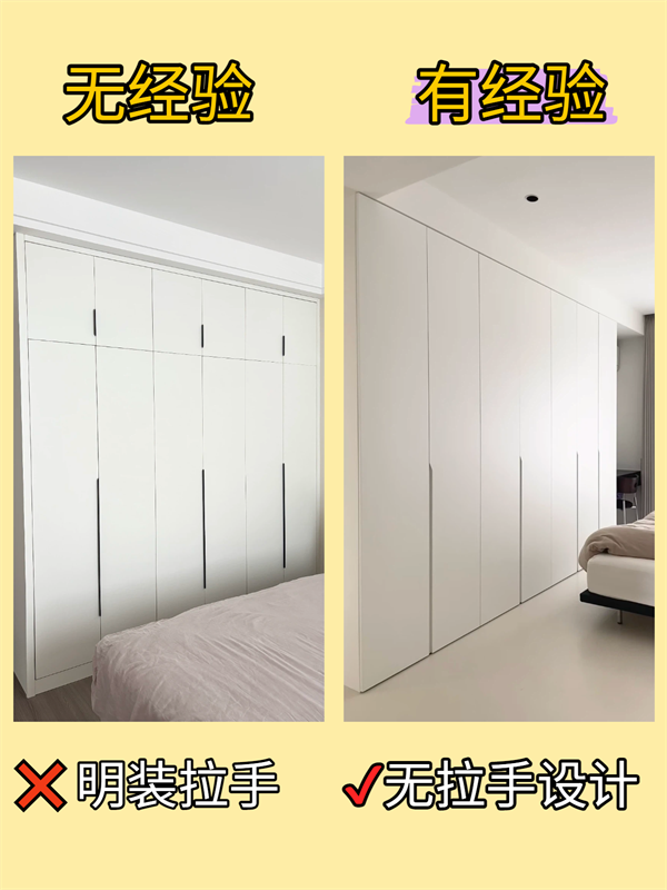 設計建議:追求整體感和易打理,首選隱形設計。若選擇明裝拉手,建議挑選圓潤、線條簡潔的款式。