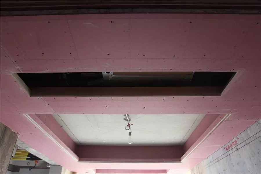 在木作施工環(huán)節(jié),吊頂采用全輕鋼龍骨固定,具有施工快、不易變形、平整度好、防火安全性高等優(yōu)點。