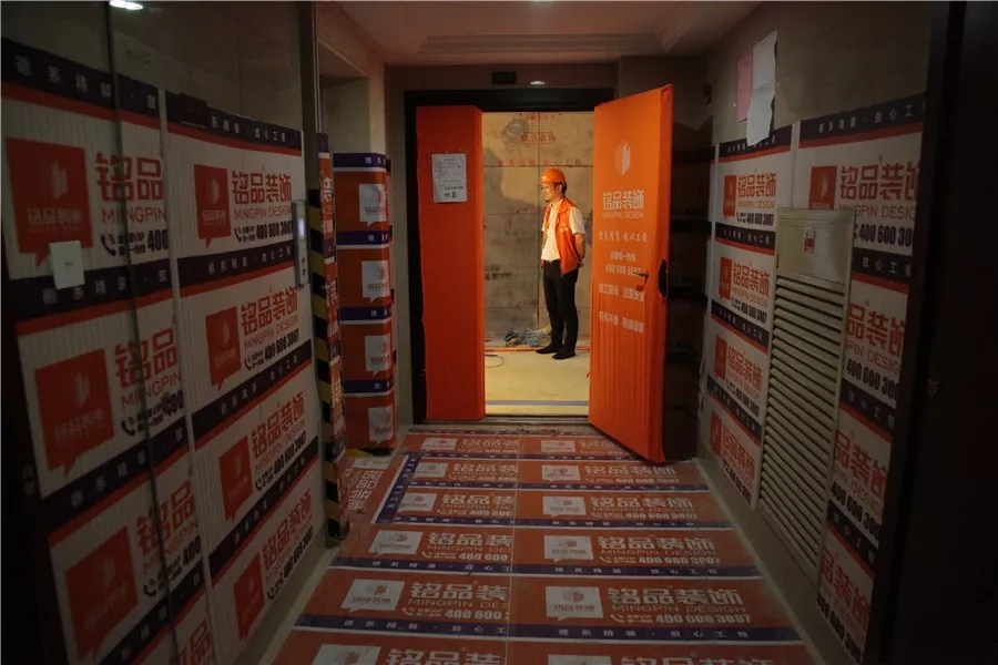 銘品有一套專門的保護(hù)系列——貼紙、保護(hù)膜、保護(hù)罩等。開工前,從電梯、入戶過道到門窗、地面,這些都會被妥善保護(hù),以防運送過程中產(chǎn)生磕碰損傷。