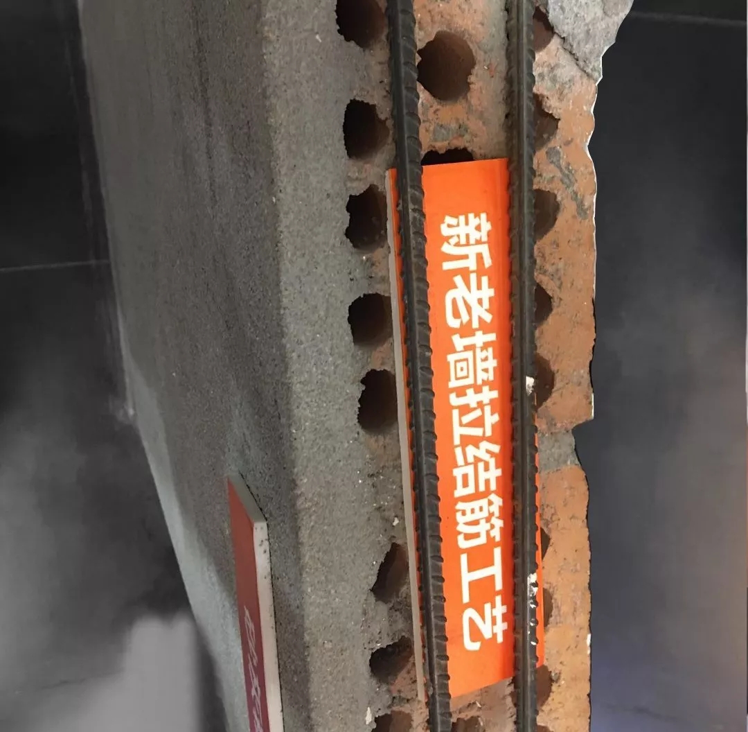 砌墻環(huán)節(jié),工匠在新舊墻體交接處采用拉結(jié)筋工藝,需每隔50cm拉兩根拉結(jié)筋,墻面掛網(wǎng)防止開裂。