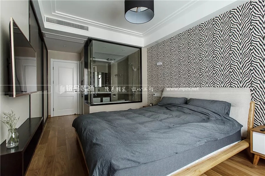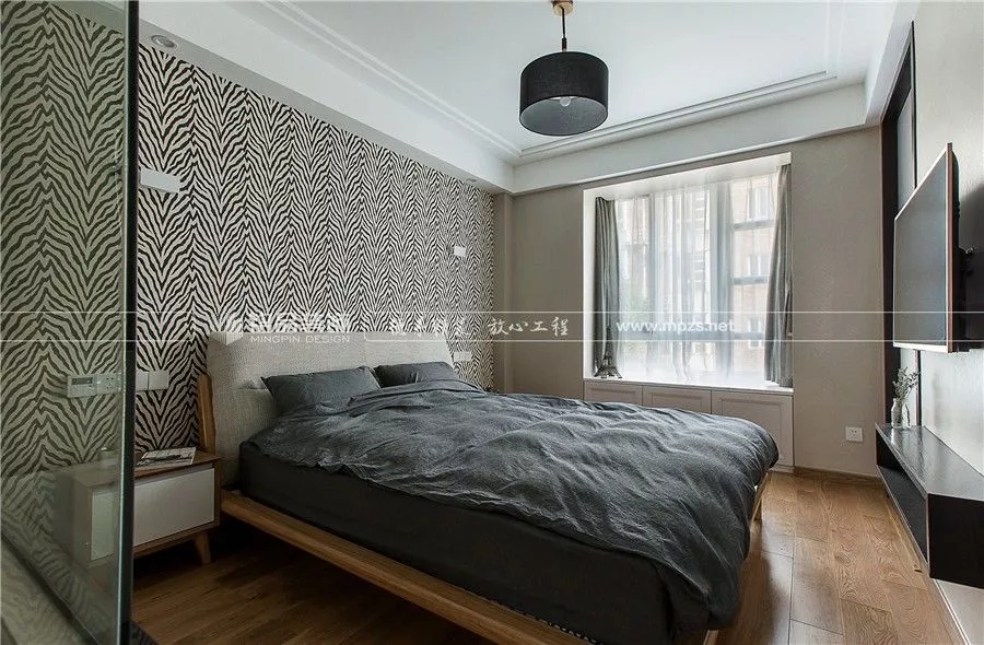 灰白色調(diào)柔和淡雅,整個空間都安靜下來,有質(zhì)感的磨砂壁紙增加靈動之美,襯托出美好的溫情時光。