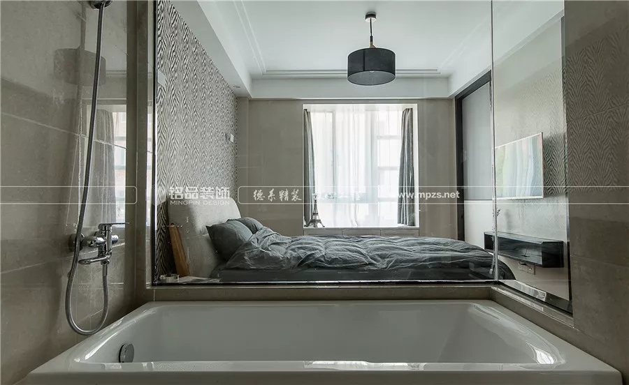 在家里有一個透明的泡澡間是一種什么樣的體驗(yàn)?男主熱愛泡澡,于是設(shè)計師在主衛(wèi)設(shè)置了大浴缸,并將主衛(wèi)的墻改成了落地玻璃。這樣的泡澡間,視覺并不壓抑,還能邊泡澡編看電視呢!
