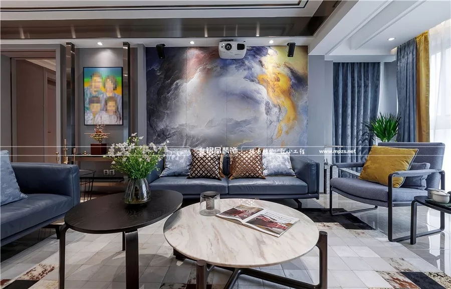 大幅抽象繪畫因絢麗的色彩引發(fā)的視覺體驗(yàn),配上清新的綠植,點(diǎn)亮了空間的文藝與清新。一家四口的全家福定制成了油畫的質(zhì)感,和諧的融入空間色彩里,一切幸福盡在不言中。