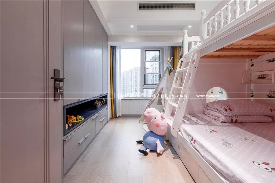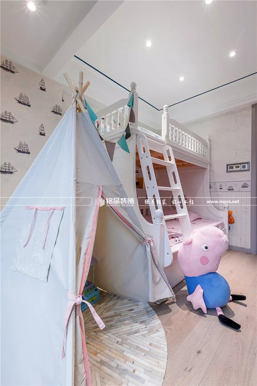 兒童房里的帳篷帶來不一樣的俏皮氣息,充滿趣味的壁紙讓空間更顯活潑。