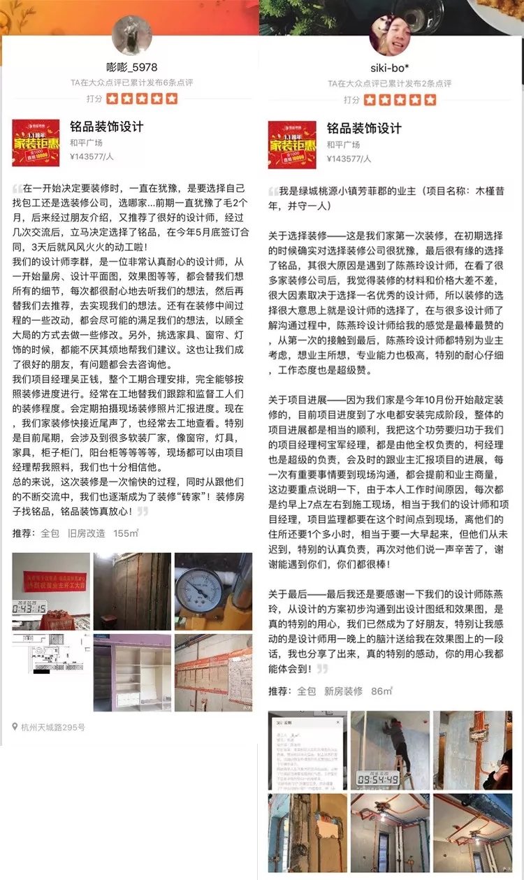 那么銘品裝飾是怎么做到的呢?憑什么銘品裝飾可以獲得客戶的信任和認(rèn)可呢?在小編揭開謎團(tuán)之前,先來看一些客戶的點評。