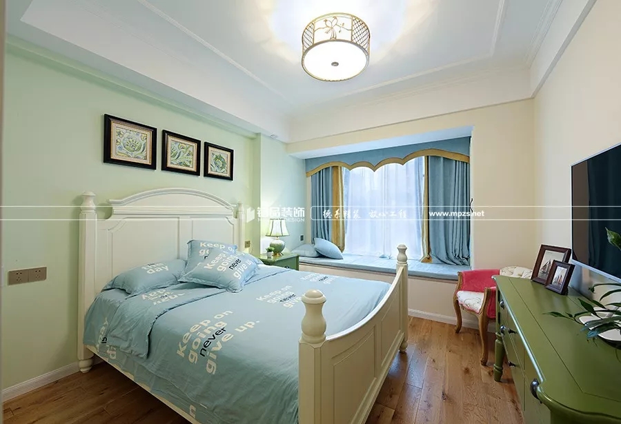 淺淺的草綠色,充滿了小清新和活力,給臥室營造一種輕松愉悅的氛圍。