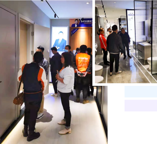 早上開始,進(jìn)店咨詢裝修的客戶絡(luò)繹不絕,銘品工作人員有序地帶領(lǐng)客戶入座小憩,端上提前準(zhǔn)備好的水果茶歇,周到的服務(wù)給客戶一種賓至如歸的體驗(yàn)。