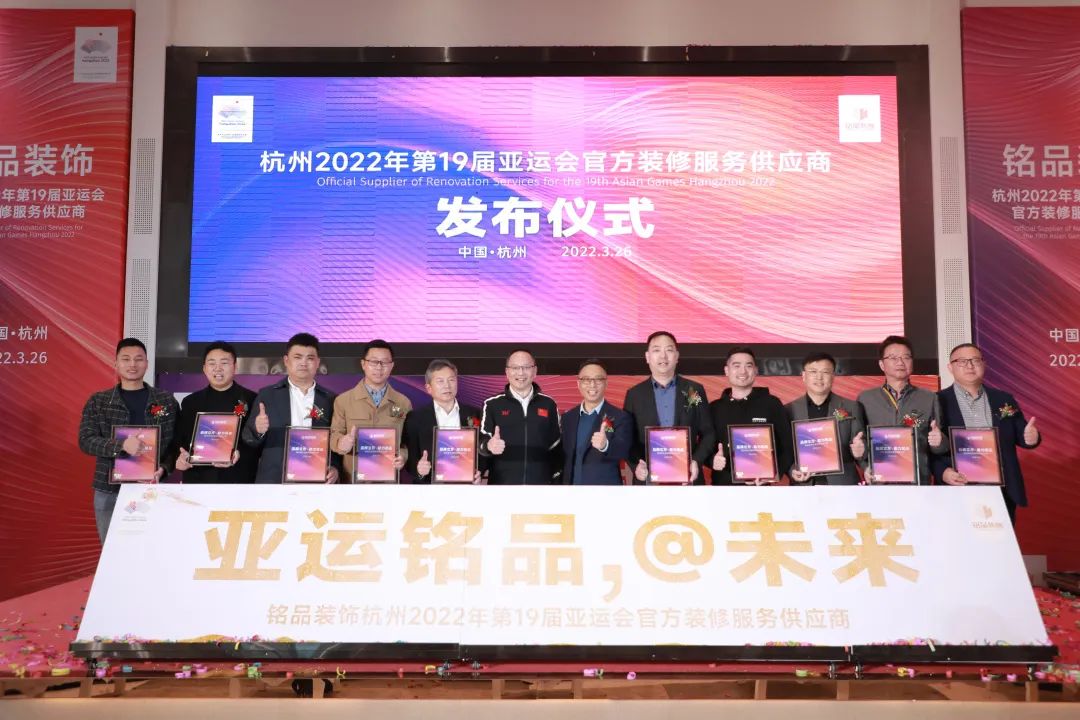 2022年3月26日,銘品裝飾正式簽約成為杭州2022年第19屆亞運(yùn)會(huì)官方裝修服務(wù)供應(yīng)商,銘品裝飾全面開啟以“亞運(yùn)銘品,@未來”的亞運(yùn)品牌戰(zhàn)略,不斷踐行社會(huì)責(zé)任,向世界展示銘品裝飾的專業(yè)優(yōu)勢(shì)及亞運(yùn)奮斗精神。