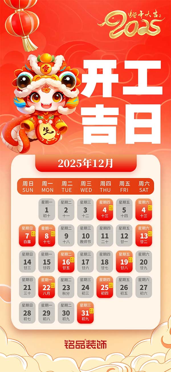 哪些日期將成為我們裝修開工的理想之選呢?