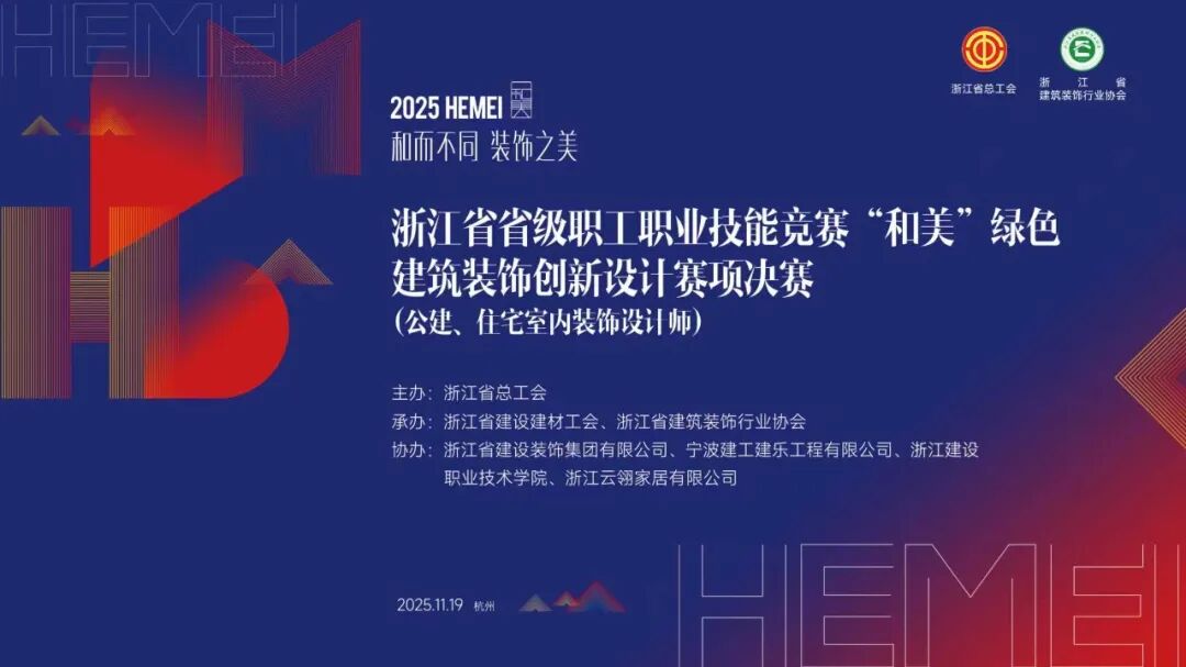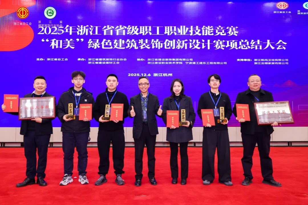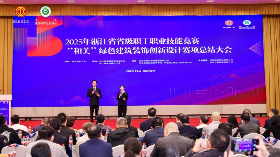 2025年12月6日,浙江省省級職工職業(yè)技能競賽“和美”綠色建筑裝飾創(chuàng)新設(shè)計賽項總結(jié)大會在杭州盛大召開。本次大會匯聚了全省建筑裝飾行業(yè)的頂尖設(shè)計師、領(lǐng)軍企業(yè)代表、知名專家學者及主流權(quán)威媒體,共同圍繞行業(yè)發(fā)展趨勢展開深入探討,分享前沿創(chuàng)新成果。