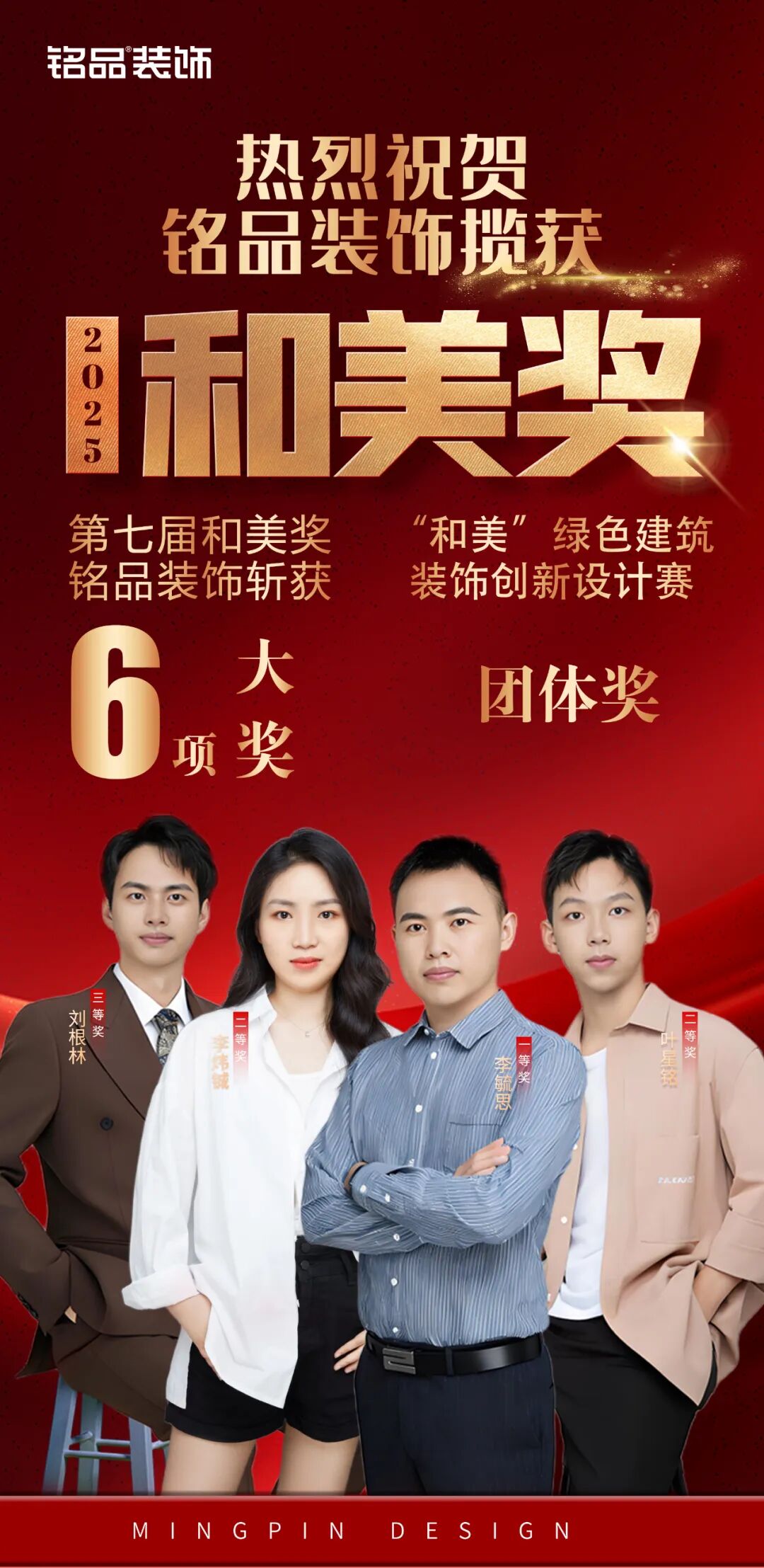 會上正式公布了2025 年“和美”綠色建筑裝飾創(chuàng)新設(shè)計賽項競賽的獲獎名單,該賽事作為行業(yè)權(quán)威認證的高水平競賽,吸引了上千份優(yōu)秀作品參與角逐。銘品裝飾憑借卓越的設(shè)計實力與鮮明的創(chuàng)新理念,在激烈競爭中脫穎而出,共榮膺六項大獎,其中包括四項設(shè)計類獎項和兩項團體獎,成為全場獲獎最多、覆蓋最全的企業(yè)!再次彰顯了銘品在家裝設(shè)計領(lǐng)域的深厚積淀與標桿地位!