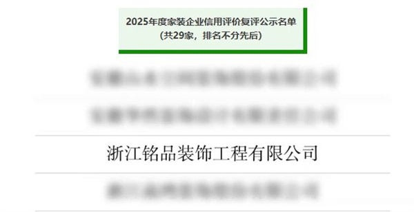 銘品裝飾再次憑借卓越的綜合實(shí)力與堅(jiān)實(shí)的信用體系,榮登榜單。