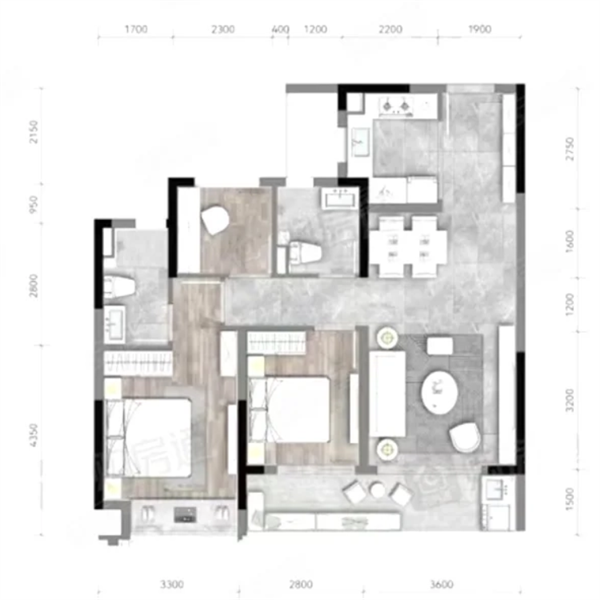 三、D2 戶型為 139㎡的四室兩廳一廚兩衛(wèi)