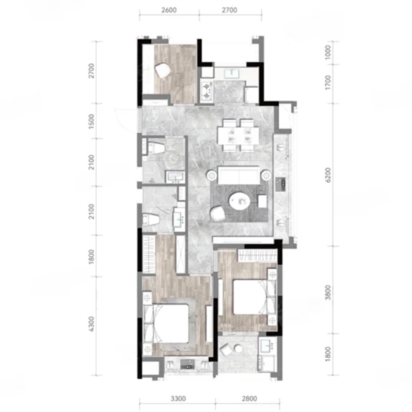 臥室分散設(shè)計(jì),極大提升了居住的私密性;全明雙衛(wèi)設(shè)計(jì),有效提升居住效率。